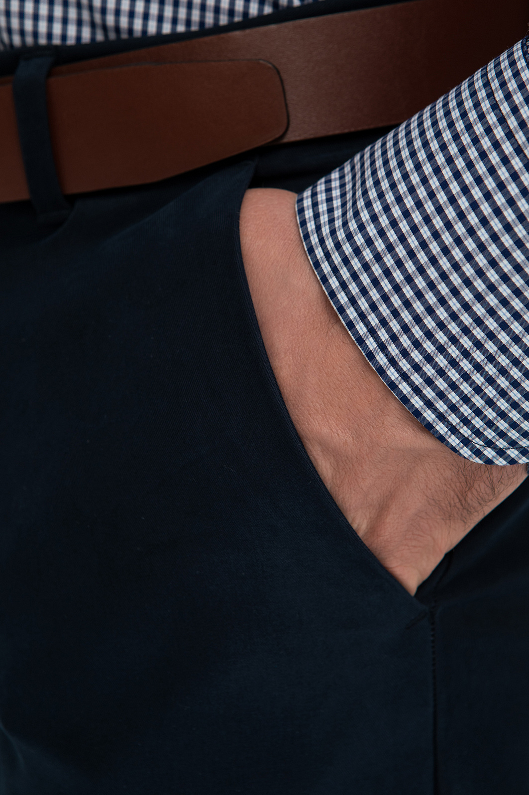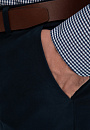 Темно-синие брюки — это идеальный выбор для мужчин, ценящих комфорт и универсальность в повседневном гардеробе. Смесовый материал из 65% модала и 35% полиэстера задает новый стандарт мягкости и прочности, а хлопковая подкладка карманов подтверждает внимание к мелочам, которые определяют ваш комфорт. Темно-синий цвет — символ спокойствия и уверенности, сопровождающих каждый ваш шаг. Классический крой комплементарно смотрится на любом типе фигуры, подчеркивая силуэт и сохраняя свободу движения. Брюки прекрасно подойдут для создания различных повседневных образов, идеально сочетаясь как с рубашками, так и с футболками или поло. Параметры модели: рост 189, 102-80-99 Размер на модели: 50