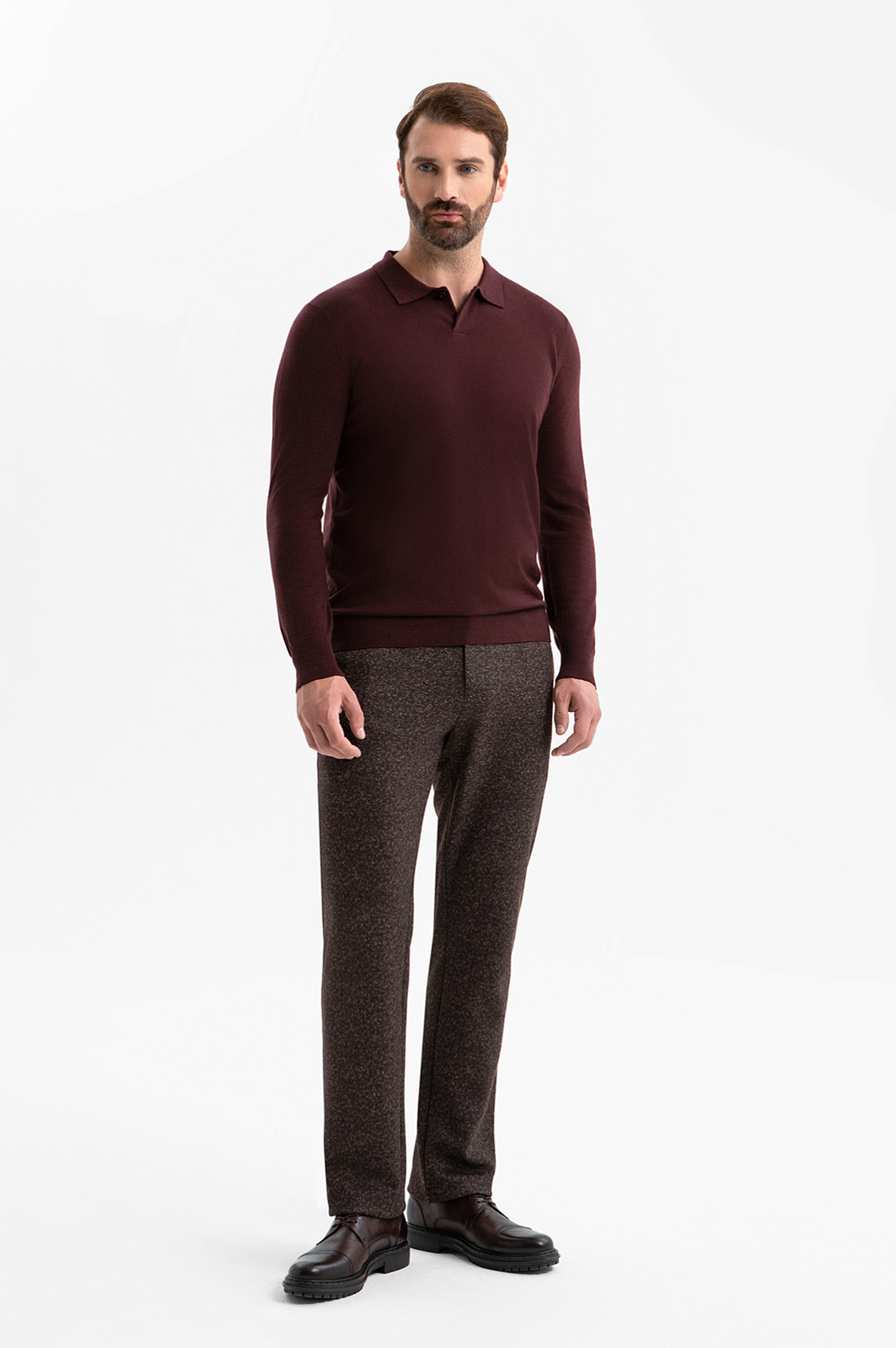 Брюки KANZLER на кулиске коричневого оттенка с меланжевым эффектом — идеальное сочетание современного силуэта и непринуждённого комфорта. Приталенный крой подчёркивает линии фигуры, создавая аккуратный современный образ, а регулируемая кулиска на поясе обеспечивает идеальную посадку. Меланжевый эффект добавляет ткани глубины и благородства. Инновационный материал, произведённый из современных синтетических и натуральных волокон, держит форму и адаптируется к индивидуальным особенностям фигуры. Благодаря добавлению хлопка ткань хорошо пропускает воздух и поддерживает приятную для тела температуру. Прочная гладкая подкладка из полиэстера и хлопка обеспечивает комфорт при надевании. Параметры модели: рост 189, 102-80-99 Размер на модели: 50
