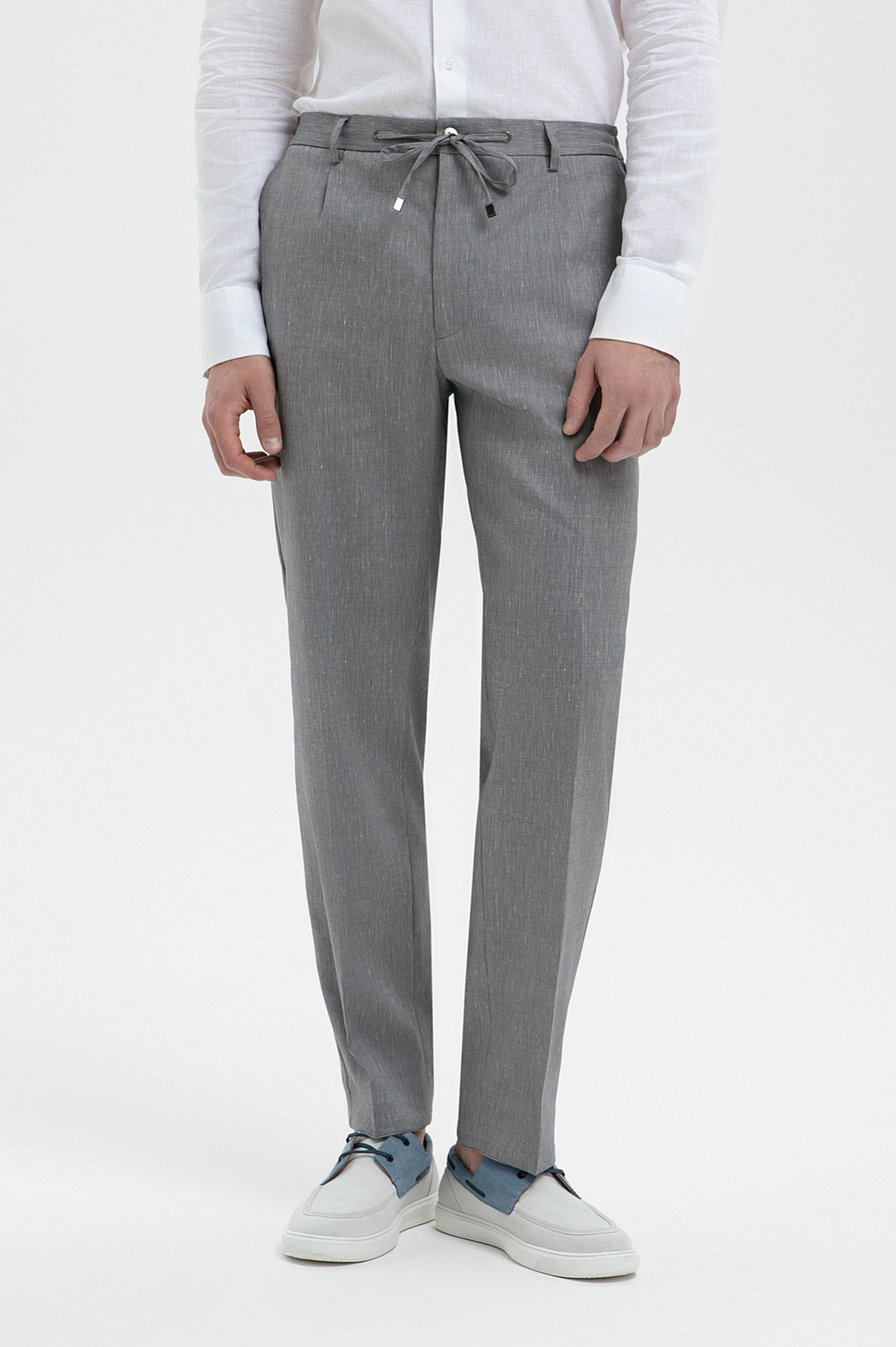 Брюки из шерсти, льна и шелка, цвет серый, цена 17 990 руб., код 271038 - купить в Ростове-на-Дону в интернет-магазине KANZLER