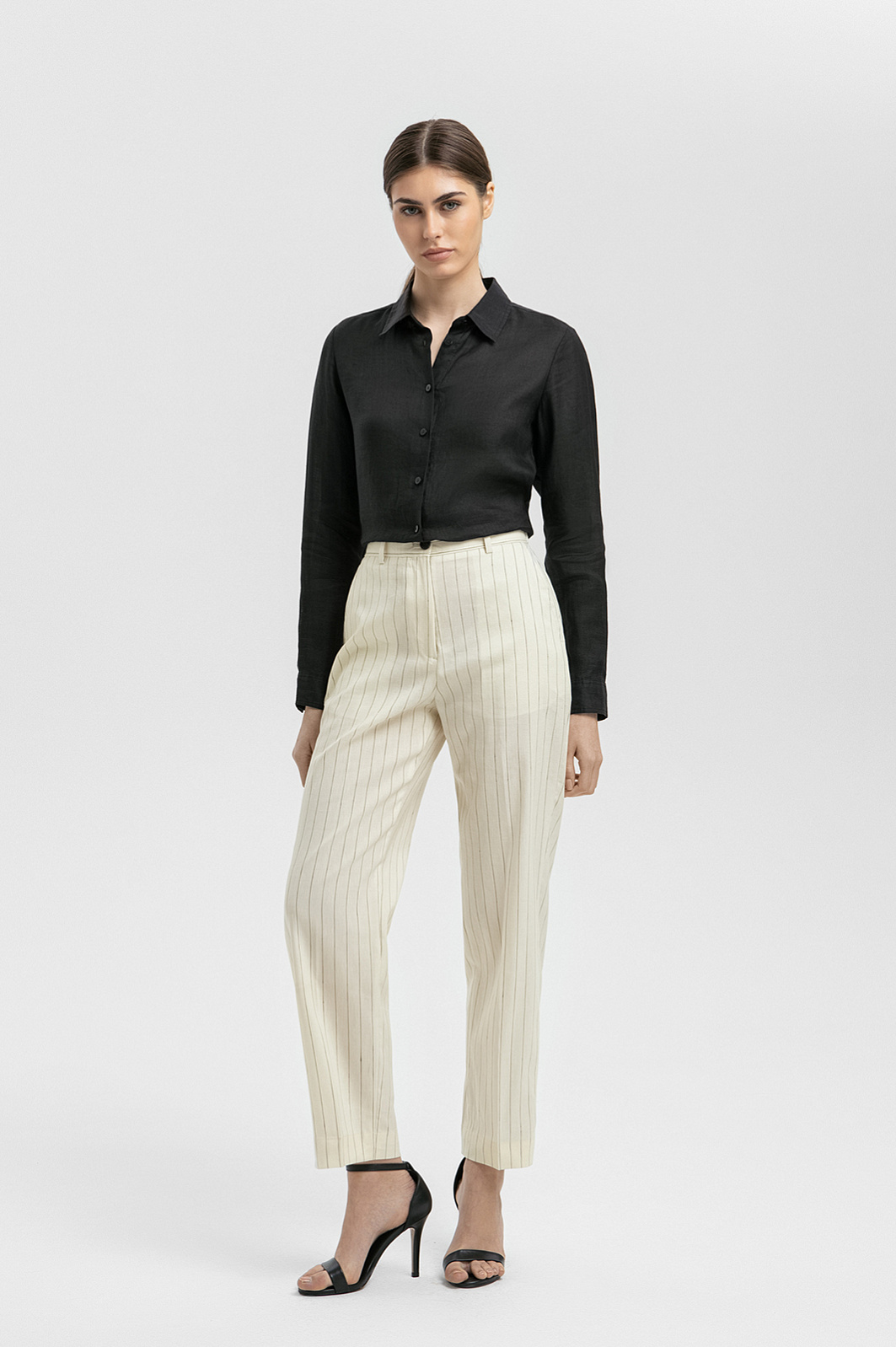 Брюки из шерсти, льна и шелка