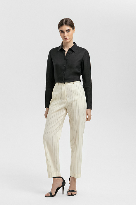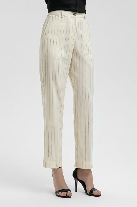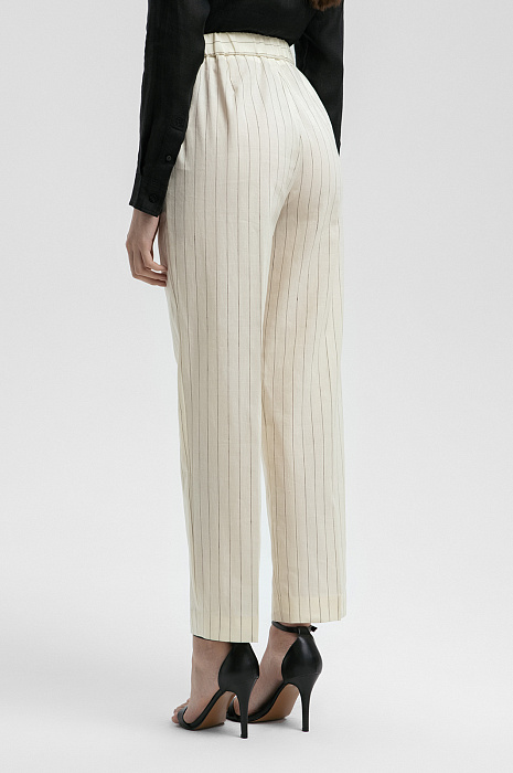 Брюки из шерсти, льна и шелка, цвет молочный, цена 19 990 руб. - купить в интернет-магазине KANZLER