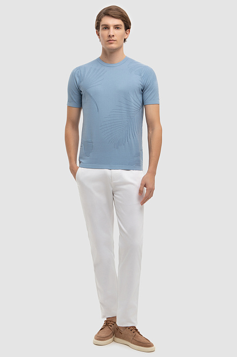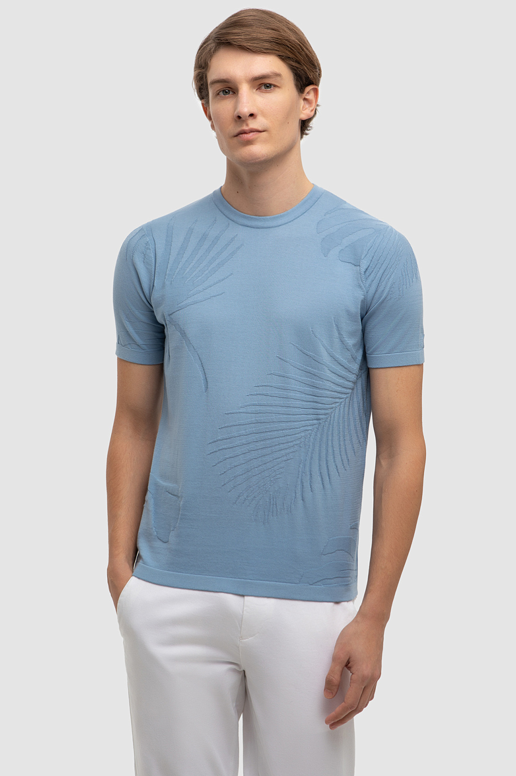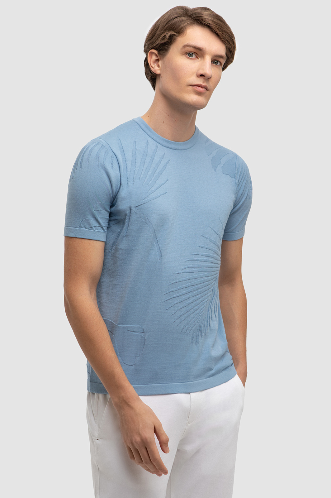 Джемпер с коротким рукавом из хлопка Пима, цвет голубой, цена 4 990 руб., код 267267 - купить в Ростове-на-Дону в интернет-магазине KANZLER