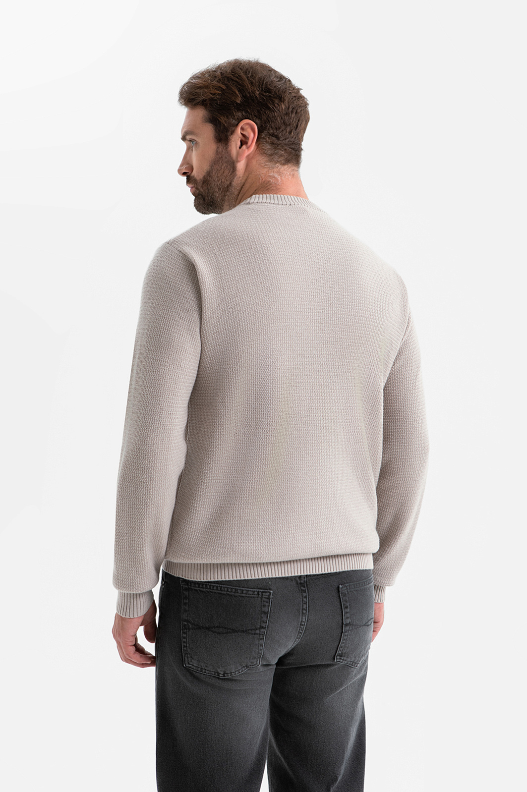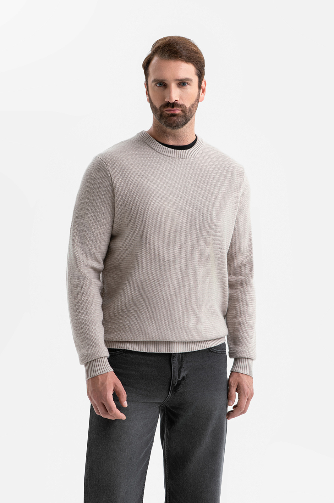 Светло-бежевый свитер KANZLER — воплощение непринуждённой элегантности и комфорта. Светлый оттенок в сочетании с лёгкой фактурой трикотажа делает образ изысканным и очень уютным. Классический круглый вырез горловины мягко обрамляет шею, создавая аккуратный и гармоничный силуэт, а плотные трикотажные резинки на манжетах и по низу обеспечивают идеальную посадку и сохраняют форму в движении. Мягкий трикотаж создан из высококачественной шерсти и нежнейшего кашемира. Такое сочетание обеспечивает приятную температуру для тела и тактильное удовольствие при каждом прикосновении. Параметры модели: рост 189, 102-80-99 Размер на модели: M