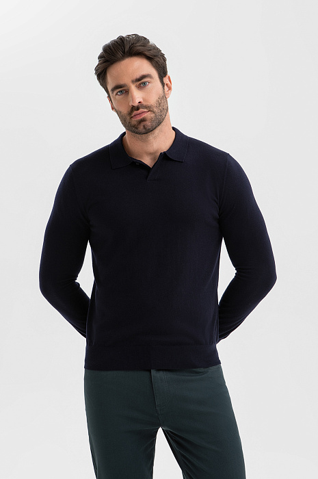 Джемпер поло из шерсти и кашемира, цвет синий, цена 9 990 руб., код 270039 - купить в Ростове-на-Дону в интернет-магазине KANZLER