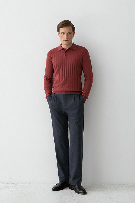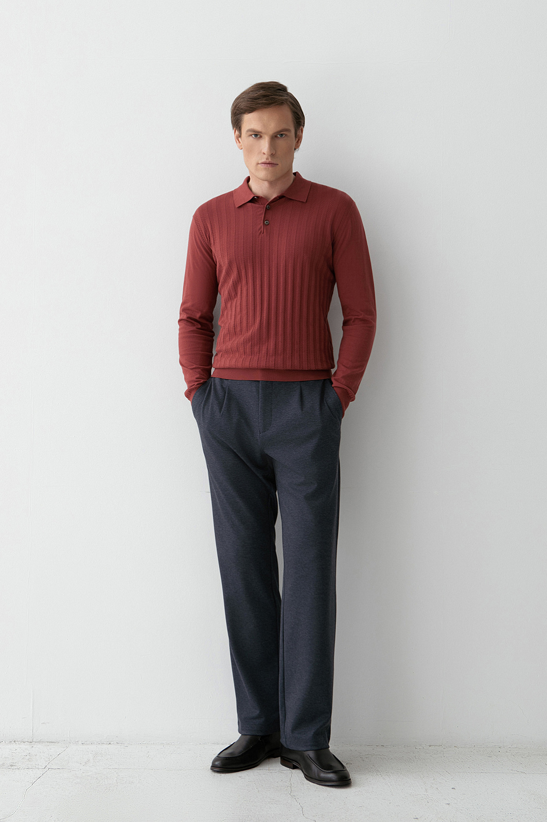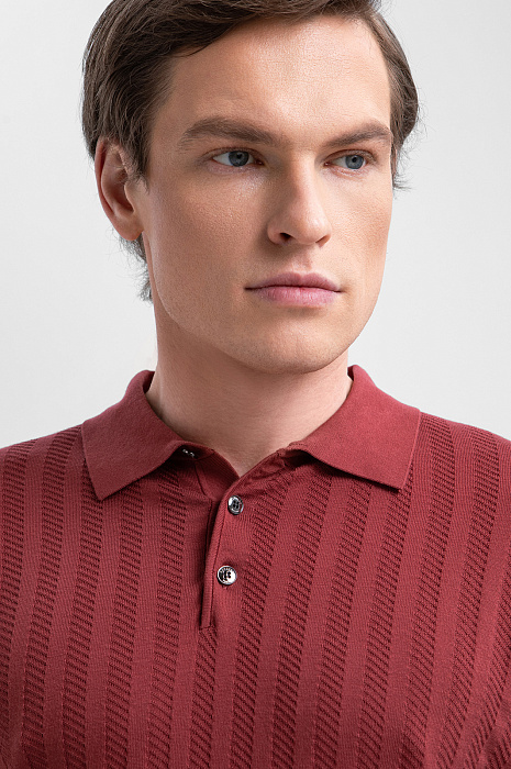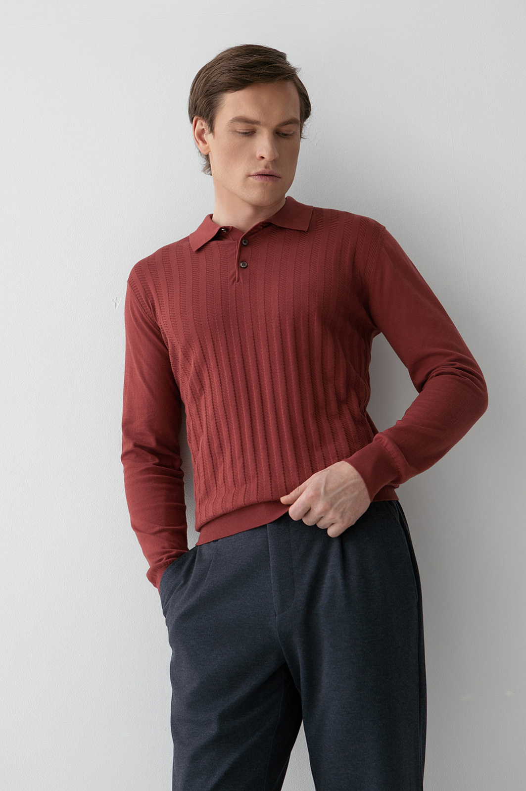 Поло KANZLER с длинным рукавом в бордово-коричневом оттенке воплощает современное представление о повседневной элегантности и продуманном комфорте. Длинный рукав делает модель универсальной для межсезонья и прохладных дней. Тёплый насыщенный цвет легко сочетается как с нейтральной базой, так и с более контрастными элементами гардероба. Особый ритм и выразительность придаёт узор из чередующихся гладких и фактурных вертикальных полосок. В составе — 100% хлопка. Дышащий гипоаллергенный материал приятно ощущается на коже, поддерживает оптимальный микроклимат и выглядит аккуратно даже при активной носке.