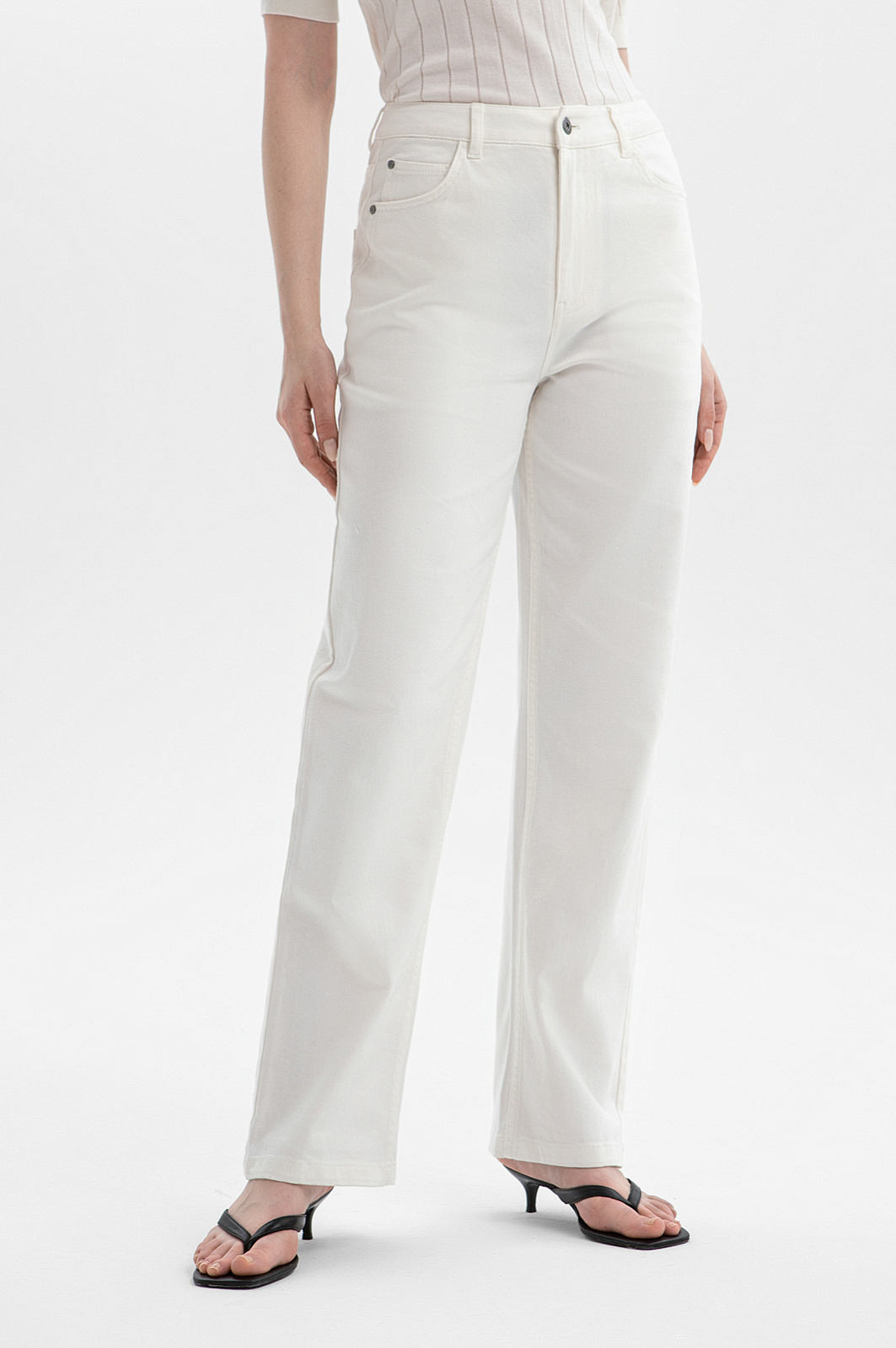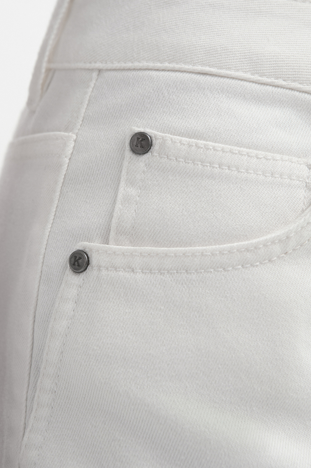 Белоснежные джинсы KANZLER привносят в образ расслабленный шик и курортную элегантность. Они созданы для тёплых солнечных дней, которые хочется проживать медленно, наслаждаясь каждым мгновением. Модель с высокой посадкой и прямыми, умеренно широкими штанинами украшает фигуру любого типа. Аккуратные фирменные заклёпки добавляют дизайну выразительный, но сдержанный штрих. Мягкий деним выполнен из гипоаллергенного дышащего хлопка, который поддерживает приятную для тела температуру. Небольшое добавление спандекса (2%) делает ткань более эластичной — она подстраивается к движению, сохраняя аккуратную посадку и форму.