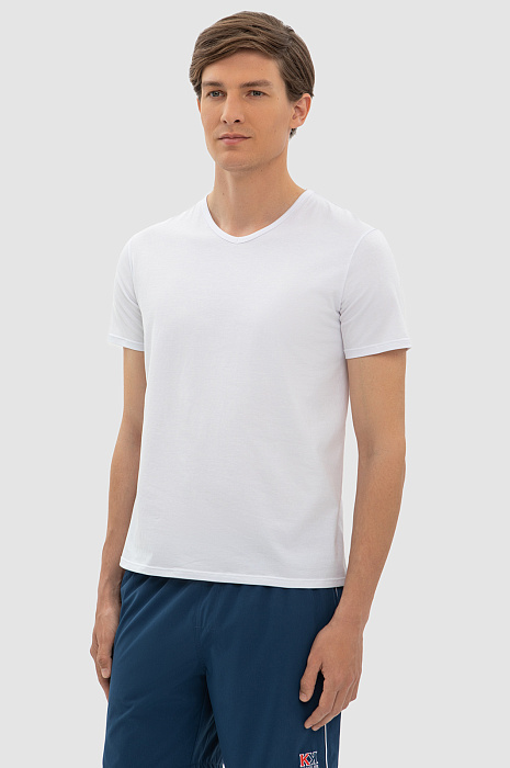Нательная футболка KANZLER из бамбука и спандекса — базовая деталь для комфортных повседневных образов и незаменимый элемент мужского стиля. В составе - натуральный, экологически чистый бамбук, обладающий антибактериальными и дезодорирующими свойствами. Для лучшей посадки по фигуре в состав добавили волокна спандекса, которые отличаются исключительной эластичностью. Смесовый состав (95% бамбук, 5% спандекс) обеспечивает идеальное сочетание мягкости и прочности, не раздражает кожу и подходит даже для самых активных дней. Белую футболку с круглым вырезом можно носить под офисную рубашку, футболку из плотной ткани или спортивную одежду. Прикосновение натуральных волокон к коже подобно легкому бризу, который дарит свежесть и прохладу. Параметры модели: рост 191, 97-77-99 Размер на модели: M