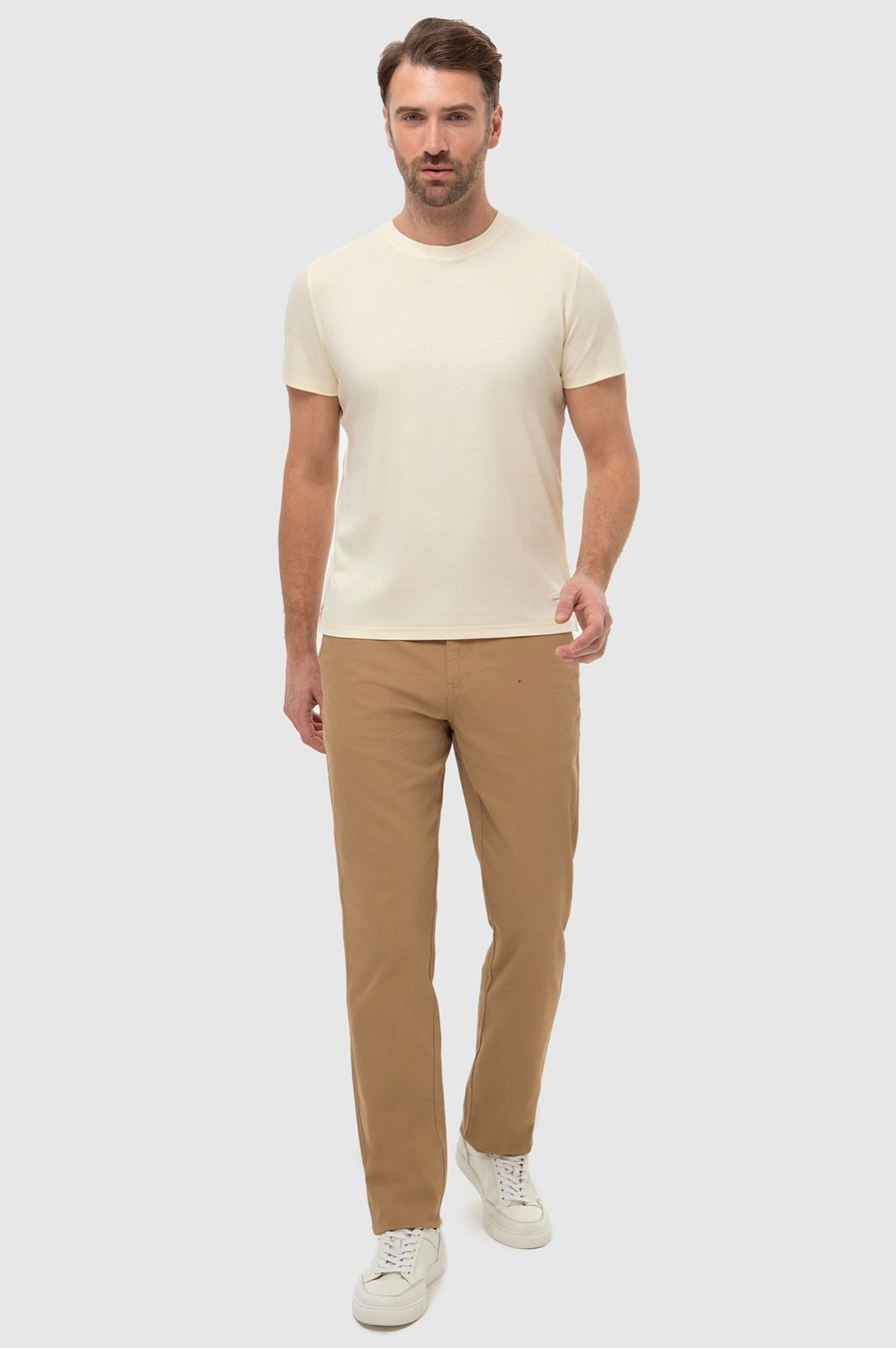 Элегантная базовая футболка KANZLER из 100-процентного хлопка оттенка сливочного мороженого незаменима на отдыхе, тренировке и в поездке. Универсальную модель отличают аккуратные детали (металлический фирменный шильдик, небольшие разрезы по бокам) и роскошный состав ткани. Легкий практичный и износоустойчивый материал сделан из чистого хлопка. Его натуральные гипоаллергенные воздухопроницаемые волокна обеспечивают комфорт на весь день и не раздражают даже самую чувствительную кожу/ Параметры модели: рост 189, 102-80-99 Размер на модели: M