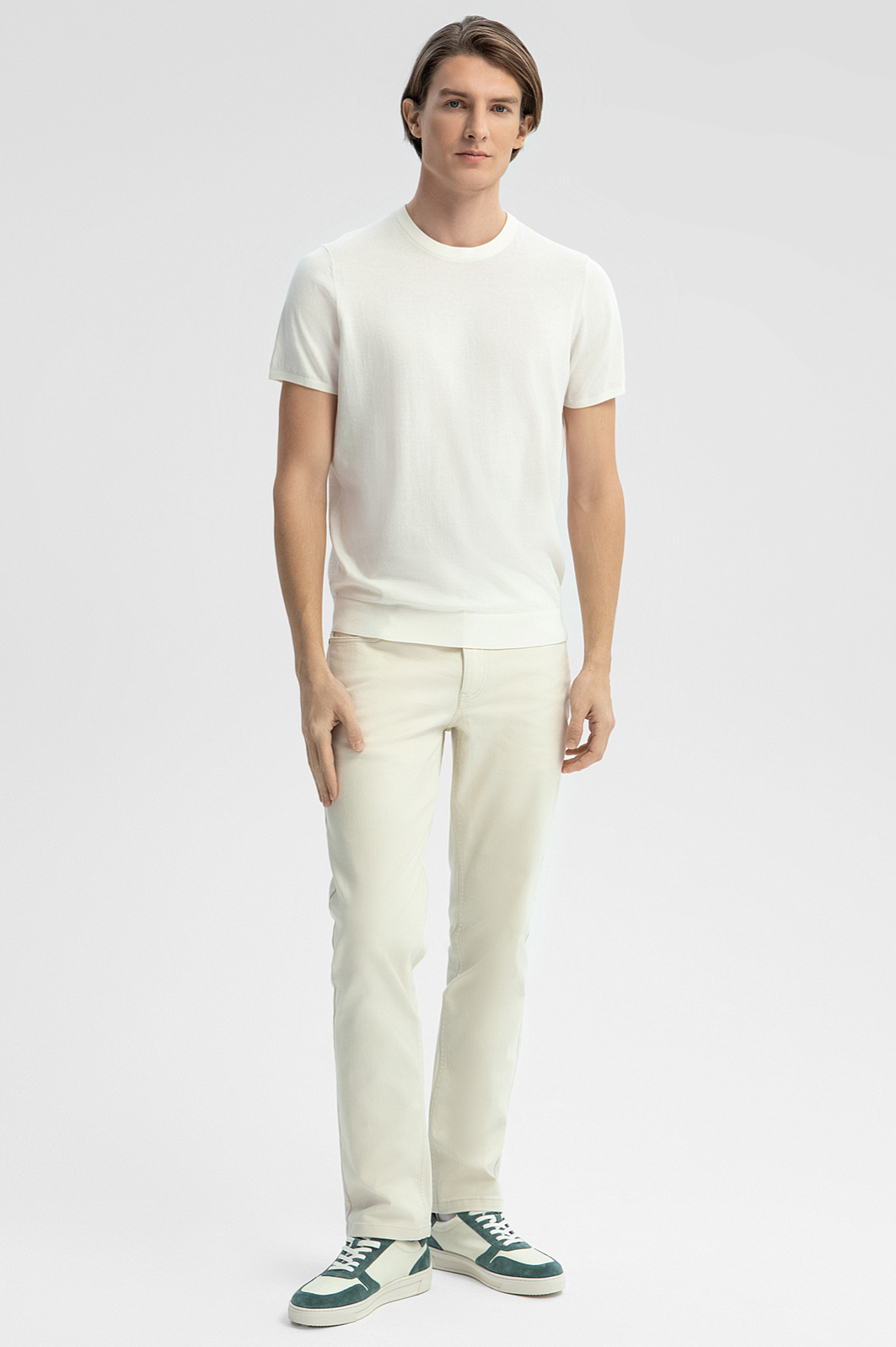 Для создания футболки KANZLER в молочном оттенке дизайнеры выбрали премиальный материал из уникального хлопка Пима. Благодаря длине волокон, ткань приобретает особую прочность, износостойкость и мягкость, обеспечивая комфорт и нежное прикосновение к коже. На горловине, вдоль низа и на манжетах – резинка, обеспечивающая аккуратную посадку по фигуре и комфортное прилегание. Модель выполнена в универсальном молочном цвете, который легко комбинируется с любыми элементами гардероба, добавляя изысканности и элегантности вашему образу. Параметры модели: рост 191, 97-77-99 Размер на модели: M