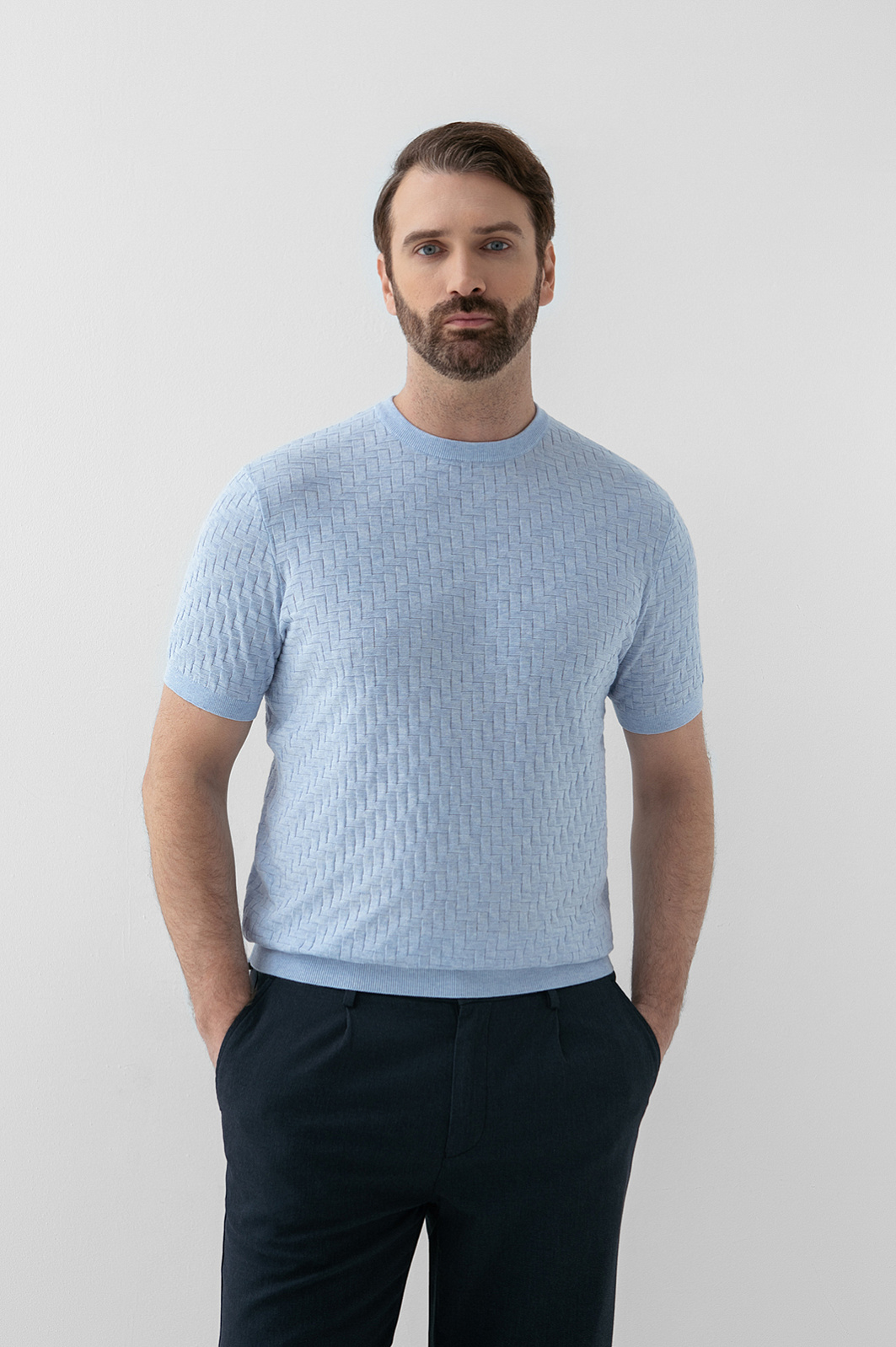 Футболка из хлопка Пима, цвет голубой, цена 8 990 руб., код 271092 - купить в Ростове-на-Дону в интернет-магазине KANZLER