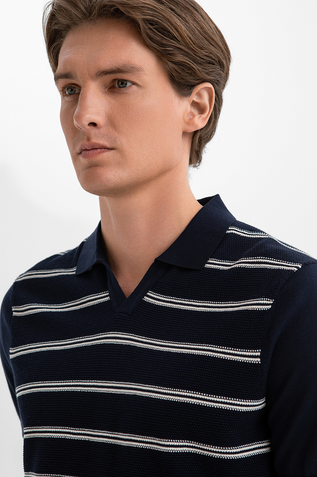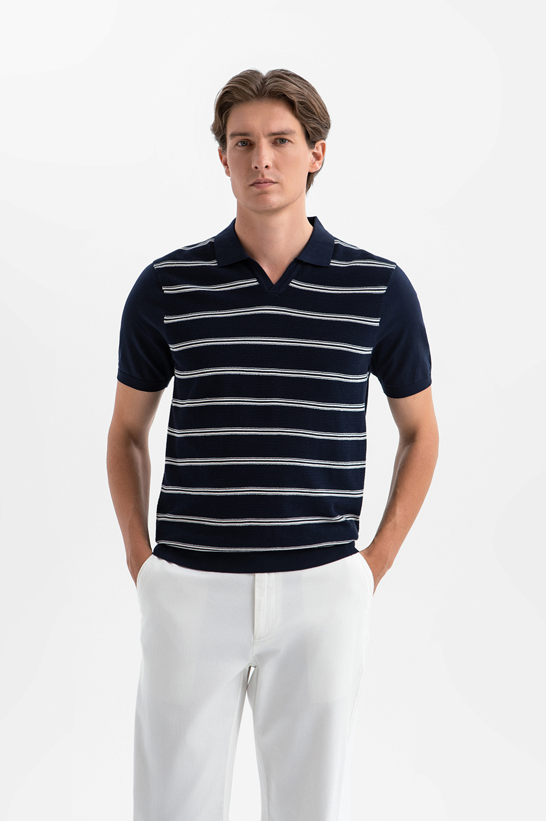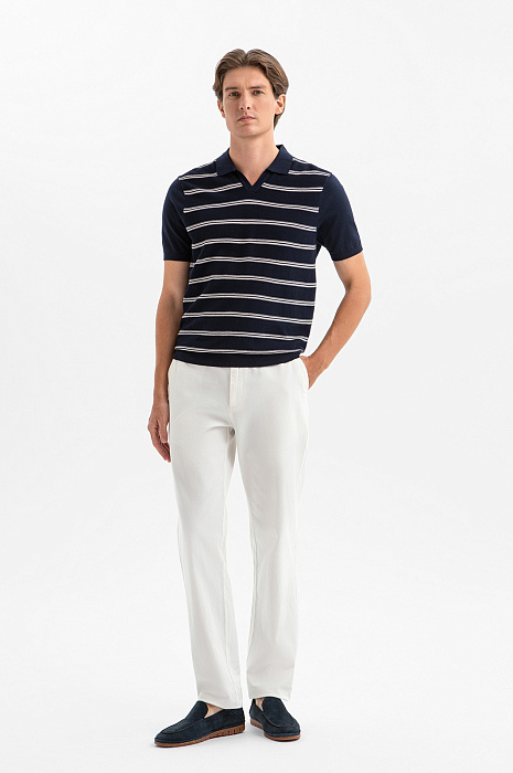 Поло KANZLER глубокого синего оттенка из дорогого премиального хлопка Пима — сочетает расслабленный курортный шик и яхтенную эстетику. Передняя часть выполнена из фактурного трикотажа и украшена горизонтальной белой полоской. Трикотажные резинки на рукавах и по низу мягко фиксируют края, обеспечивая аккуратную посадку. Высококачественный материал выполнен из хлопка Пима, который ценится за исключительную мягкость, шелковистую текстуру и повышенную прочность. Натуральные гипоаллергенные волокна прекрасно пропускают воздух, обеспечивая комфорт и свежесть.