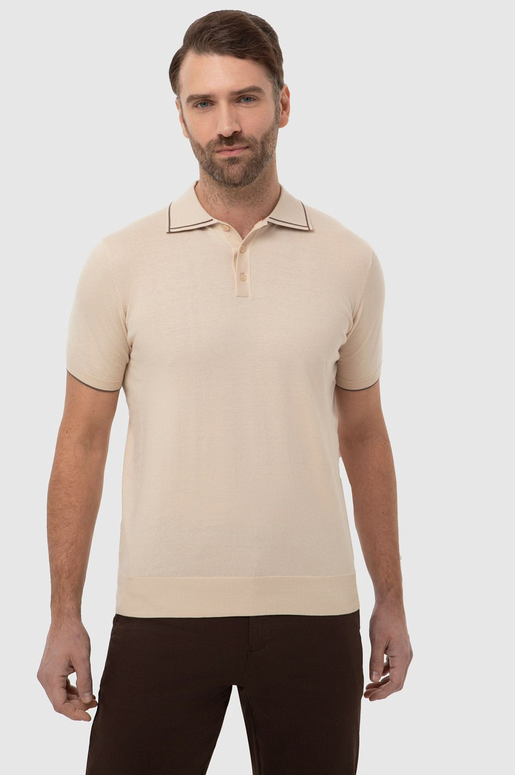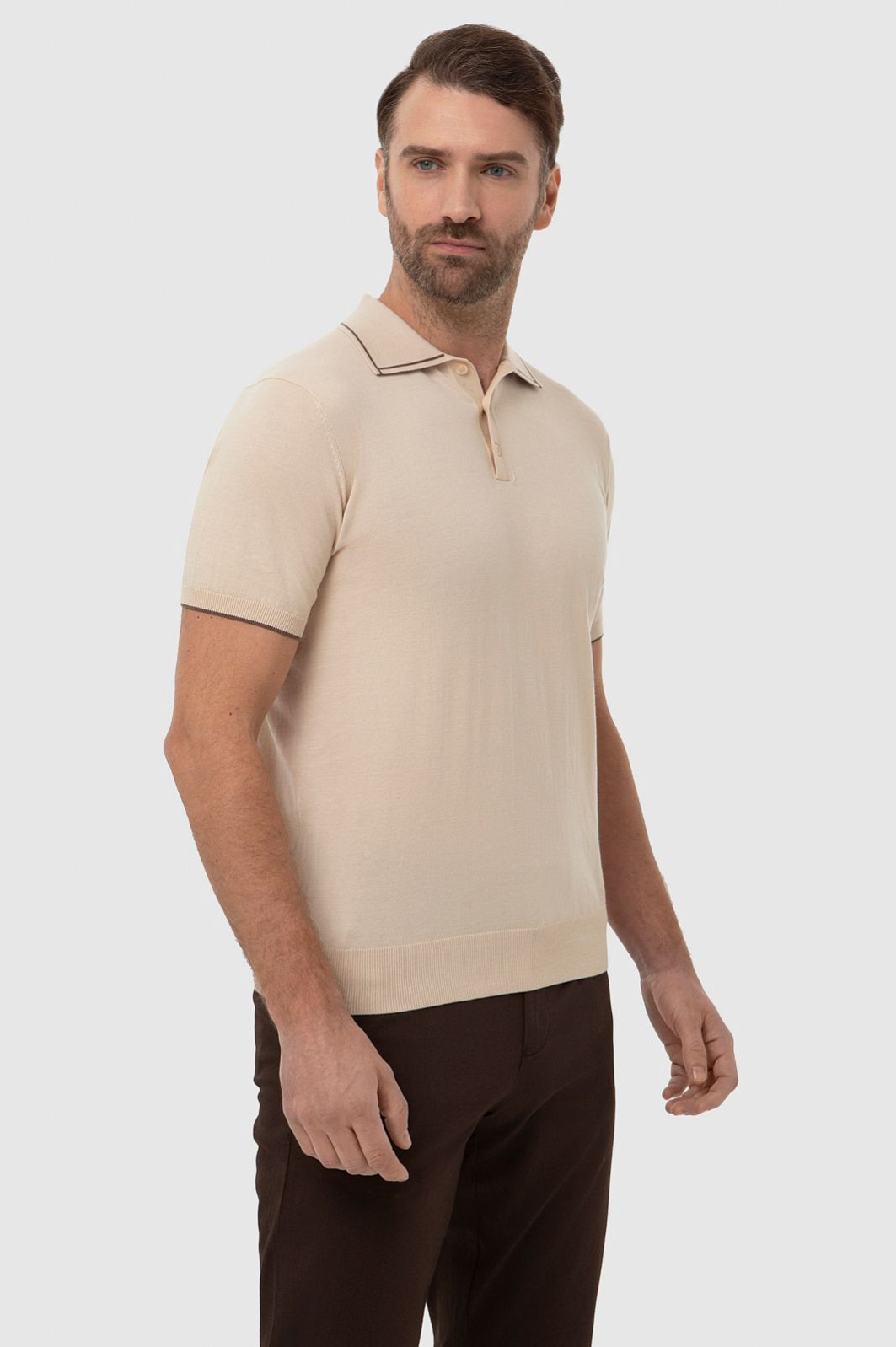 Поло из хлопка Пима, цвет бежевый, цена 8 990 руб., код 267249 - купить в Ростове-на-Дону в интернет-магазине KANZLER