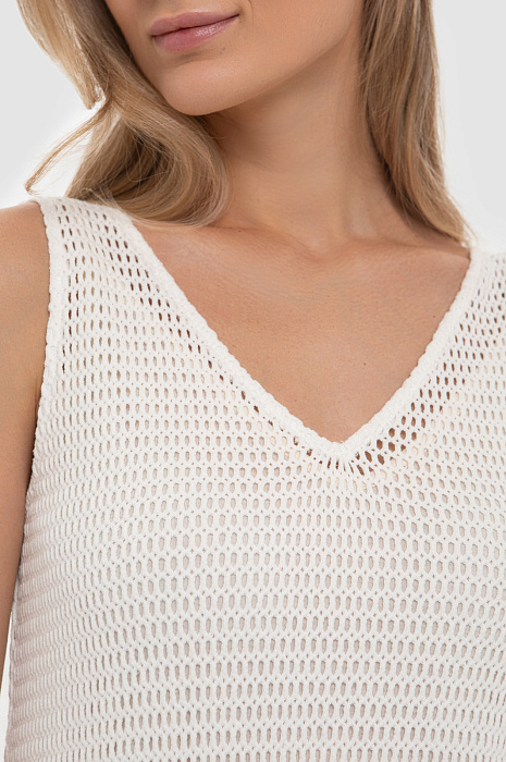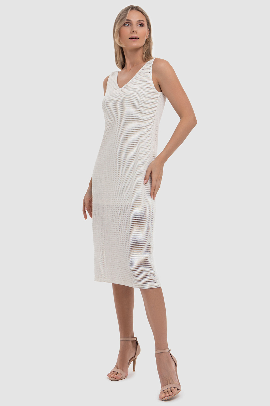 Вязаное платье-миди из 100% хлопка добавит романтики в летний гардероб, подчеркивая вашу женственность и утонченность. Символ чистоты – благородный белоснежный цвет в сочетании с воздушной вязаной фактурой создает свежий и легкий образ. Подкладка из полиэстера обеспечивает удобную посадку по фигуре. Сохраняющий свободу движения крой и комфортная длина делают платье безупречным выбором как для прогулок по городу или побережью, так и для особых мероприятий. Параметры модели: рост 180, 87-61-91 Размер на модели: S
