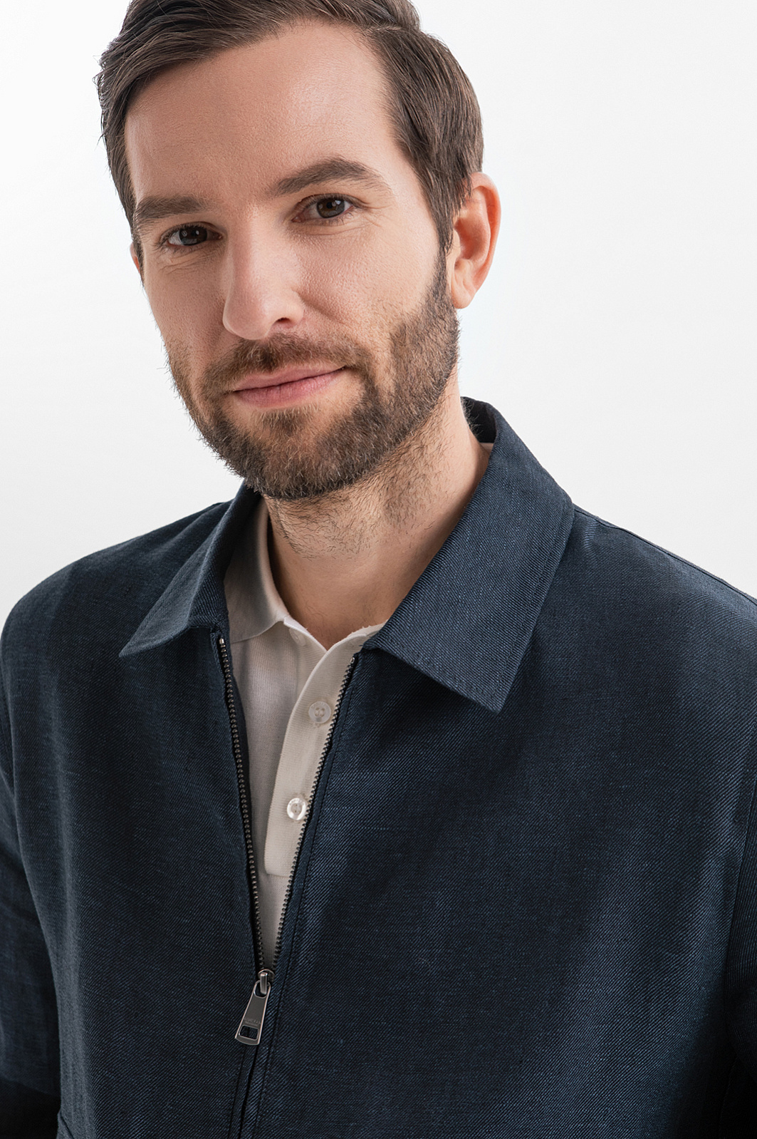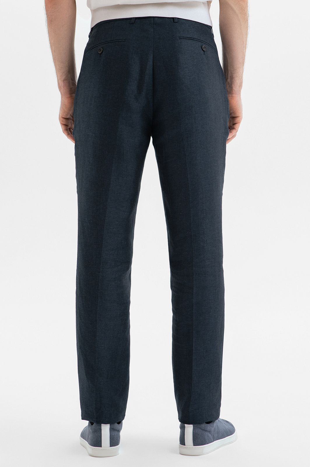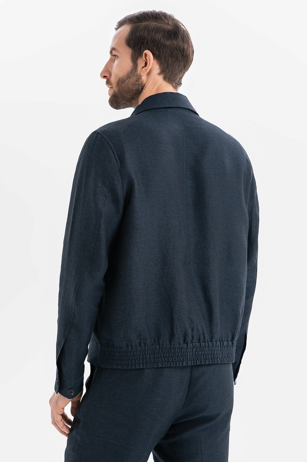 Льняной костюм KANZLER расскажет о вашем безупречном стиле и индивидуальности без слов. Куртка и брюки выполнены из 100-процентного льна в глубоком синем оттенке. Натуральная ткань, словно вторая кожа, дышит, мгновенно отводит влагу и обеспечивает прохладу в жаркий день, делая этот комплект идеальным спутником для городских прогулок, встреч и путешествий. Каждая деталь ансамбля продумана до мелочей. Куртка на молнии с отложным воротником и накладными карманами добавляет образу урбанистический характер, а облегченный крой без подкладки дарит ощущение невесомости. Брюки слегка зауженного кроя балансируют между строгостью и расслабленностью, а стрелки визуально вытягивают силуэт. Дополните образ светлым поло с коротким рукавом и кедами или лоферами.