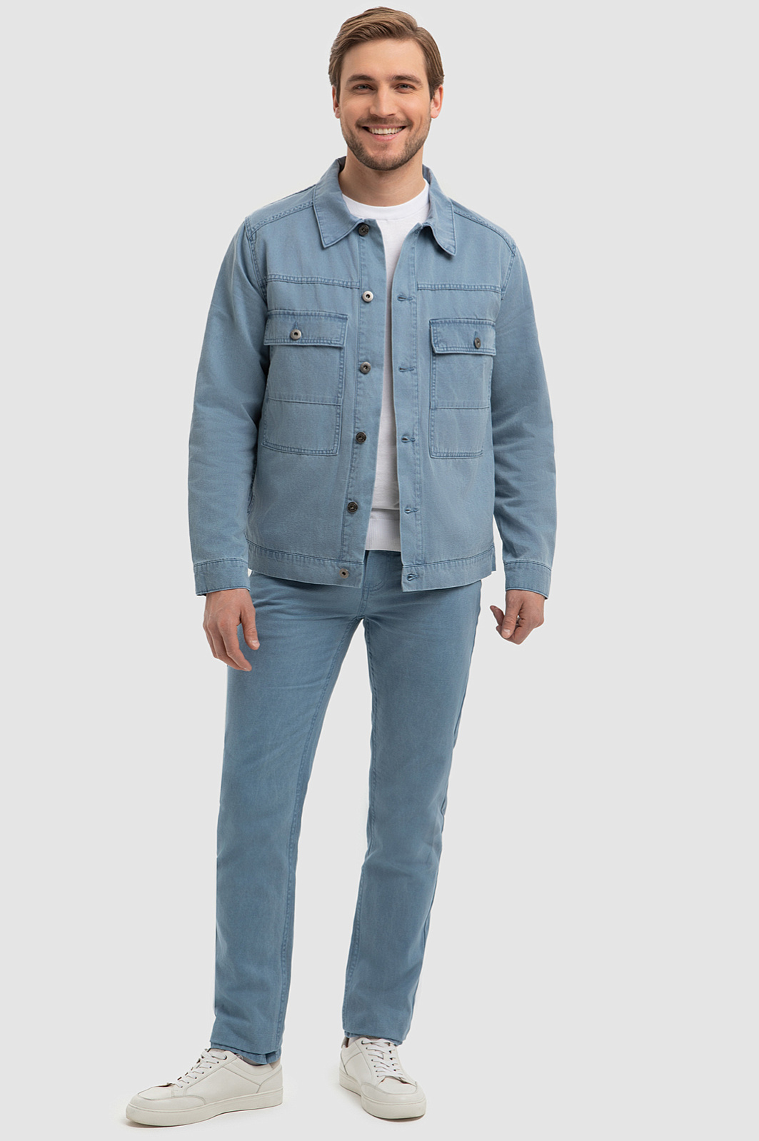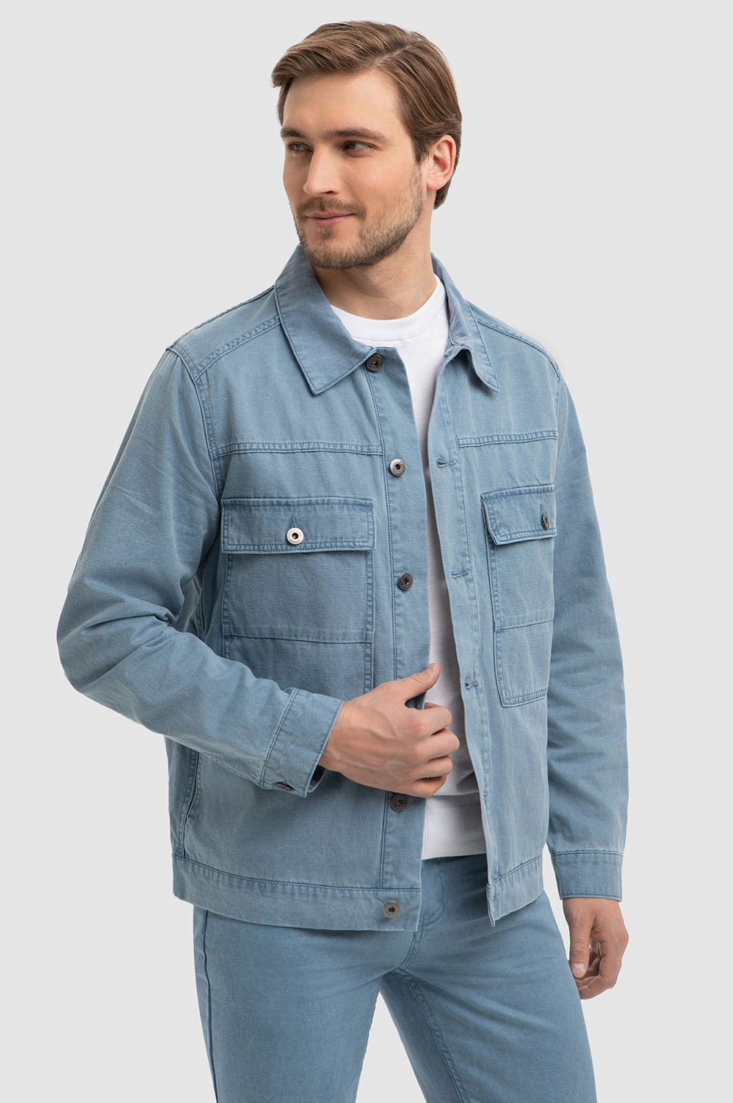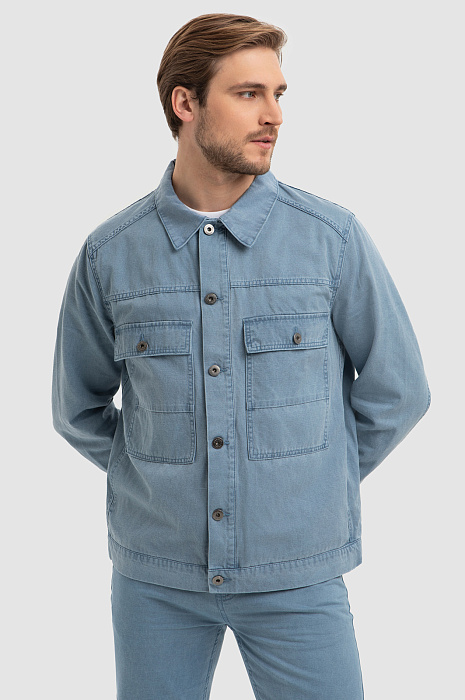 Куртка джинсовая с добавлением льна, цвет голубой, цена 7 990 руб., код 266725 - купить в Ростове-на-Дону в интернет-магазине KANZLER
