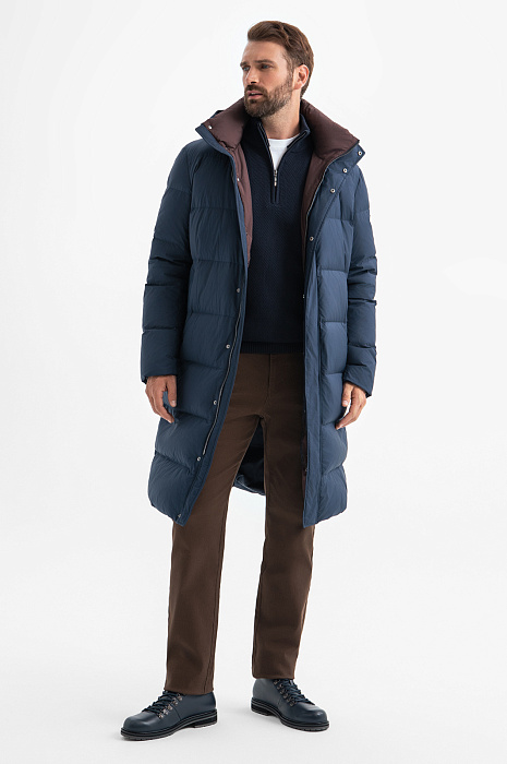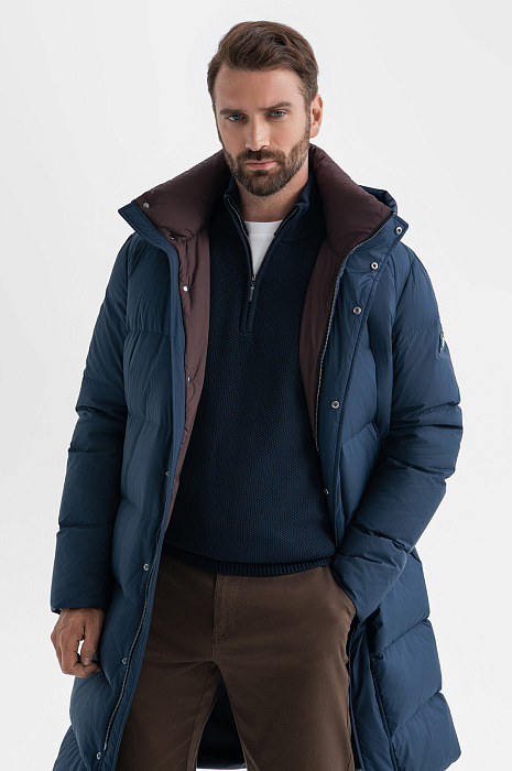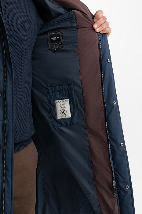 Пуховик удлиненный с водоотталкивающей обработкой, цвет синий, цена 29 990 руб., код 268573 - купить в Ростове-на-Дону в интернет-магазине KANZLER