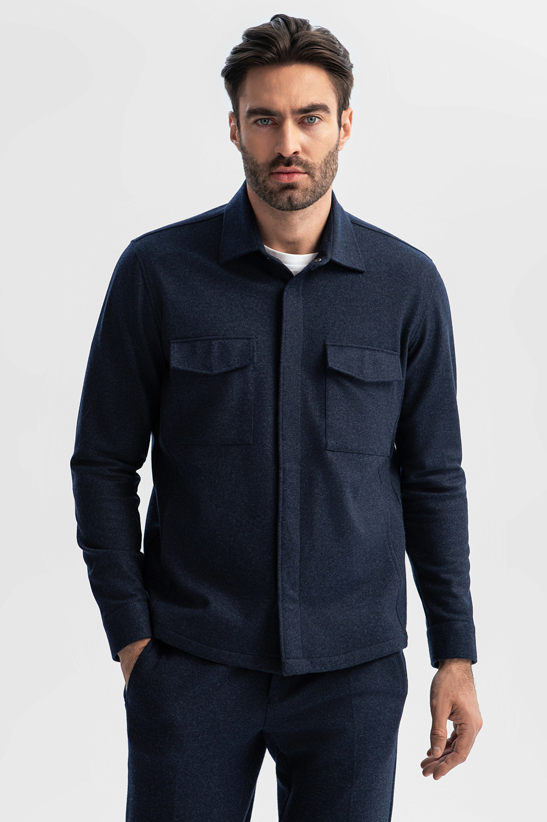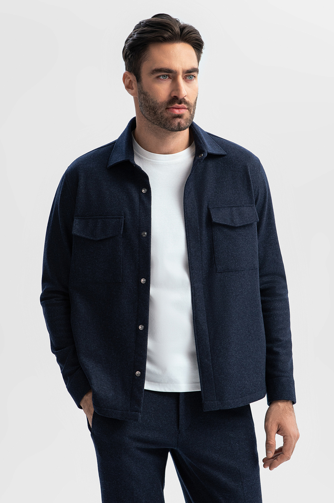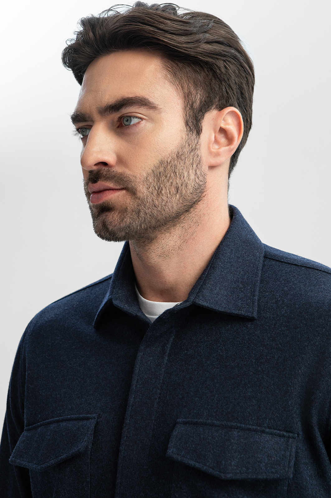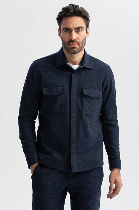 Куртка-рубашка из итальянской шерстяной ткани Vitale Barberis, лимитированная коллекция, цвет синий, цена 26 990 руб., код 269369 - купить в Ростове-на-Дону в интернет-магазине KANZLER
