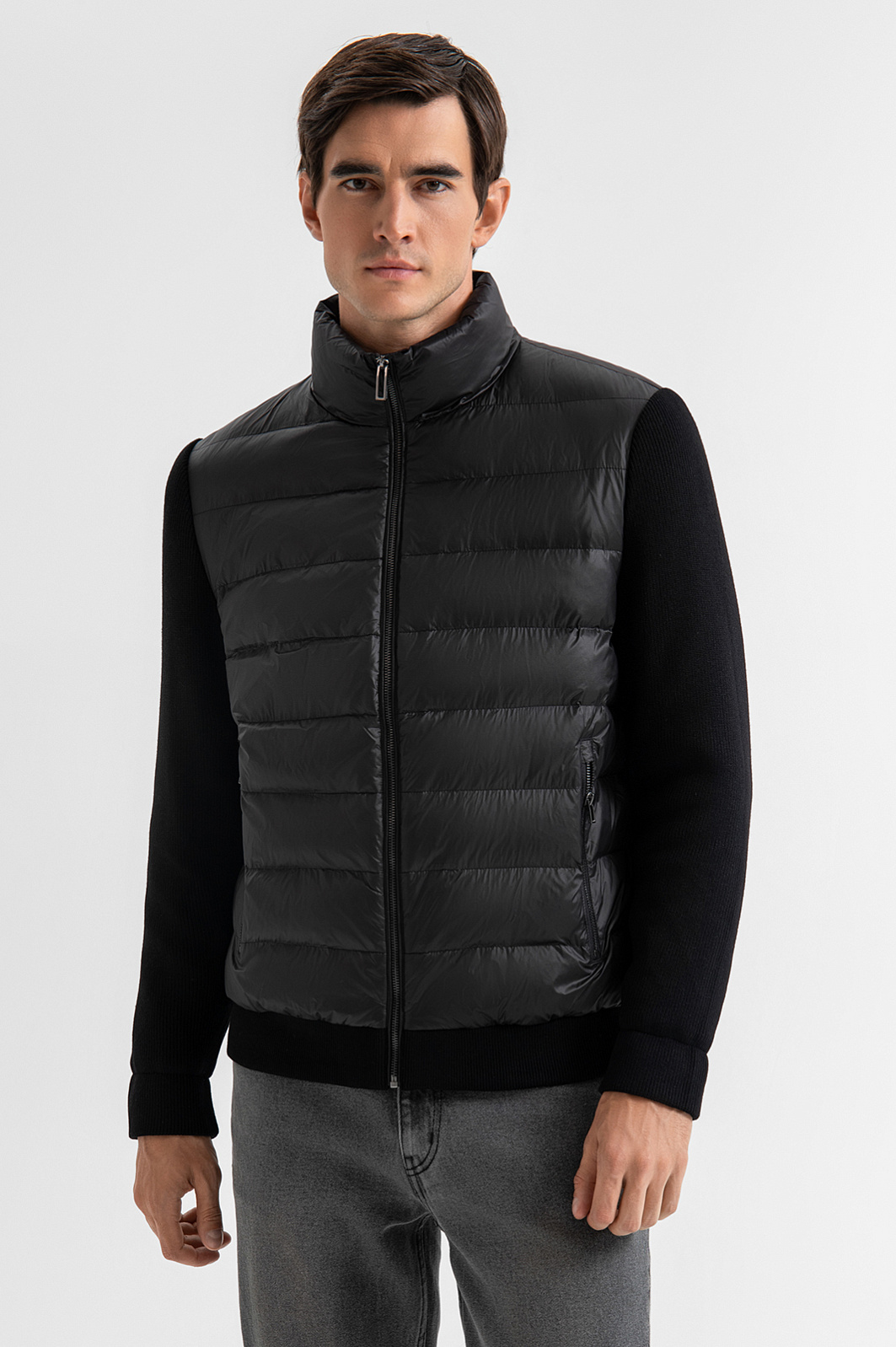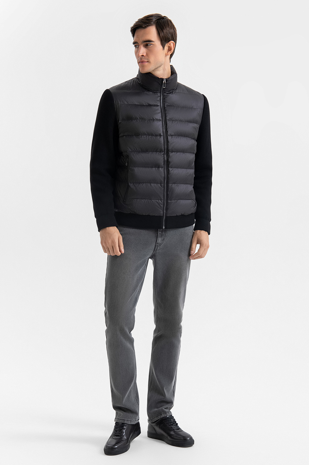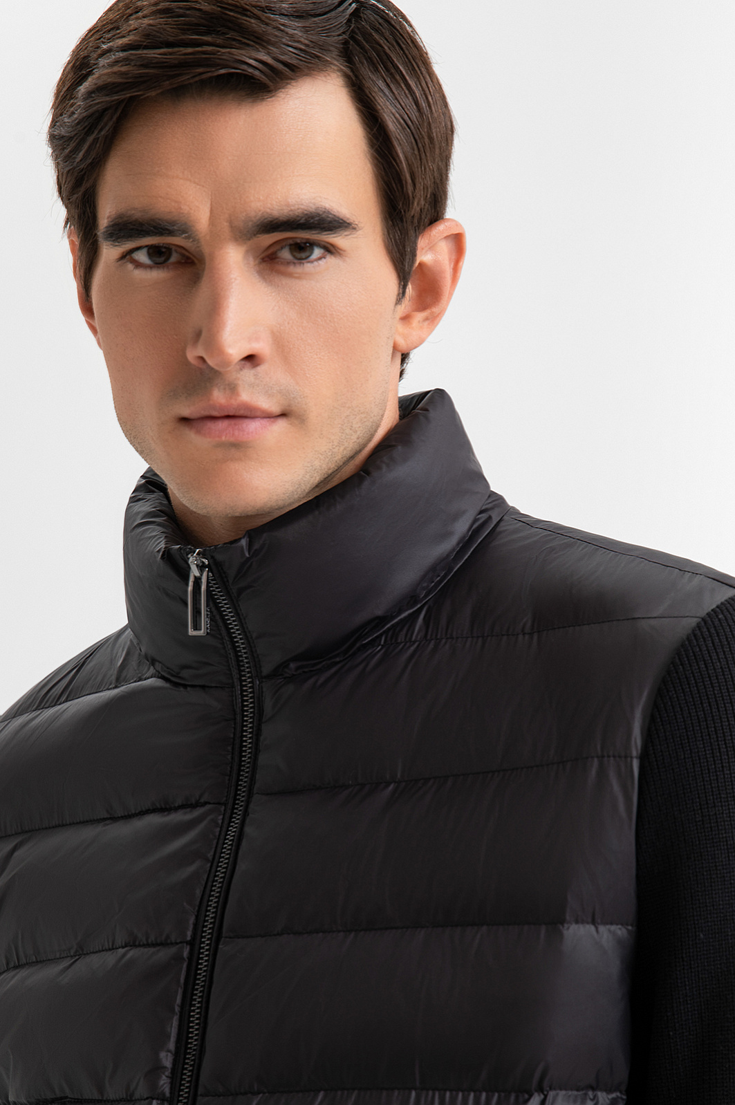 Чёрная тёплая куртка KANZLER с высоким воротником — универсальный элемент гардероба для переменчивой погоды и активного городского ритма. Лёгкая, практичная и функциональная модель идеально подойдёт для повседневного использования: прогулок, поездок и путешествий. Стильный акцент — небольшой фирменный шильдик в верхней части спинки. Широкие текстильные резинки на манжетах и по нижнему краю плотно прилегают к телу, не пропуская холод, и подчёркивают спортивный характер модели. Стёганая основная часть из гладкого полиамида с водоотталкивающей обработкой надёжно защищает от ветра, дождя и снега и сохраняет тепло благодаря утеплителю из полиэстера. Рукава выполнены из приятной на ощупь матовой смесовой ткани (87% район, 13% полиэстер). Параметры модели: рост 192, 101-76-97 Размер на модели: 50