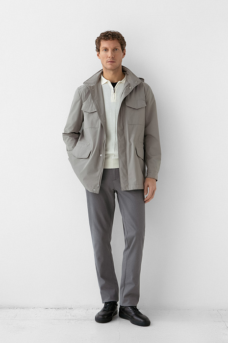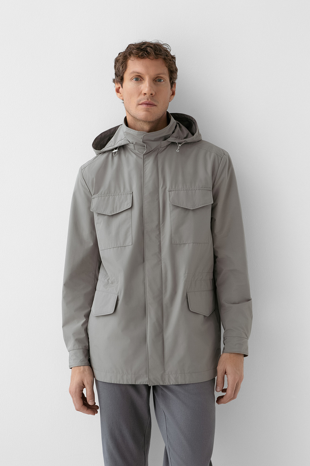 Лёгкая куртка KANZLER с капюшоном серо-бежевого оттенка сочетает сдержанную эстетику современного городского casual с продуманной функциональностью и чистотой линий. Нейтральный оттенок выглядит благородно и легко интегрируется в базовый гардероб, оставаясь вне трендов. Умеренно свободный крой не сковывает движения и позволяет комфортно носить куртку поверх многослойных образов. Потайной шнурок с фиксатором помогает точно отрегулировать посадку, сохраняя аккуратный силуэт. Современная ткань из прочного полиэстера с водоотталкивающей обработкой надёжно защищает от дождя и ветра.