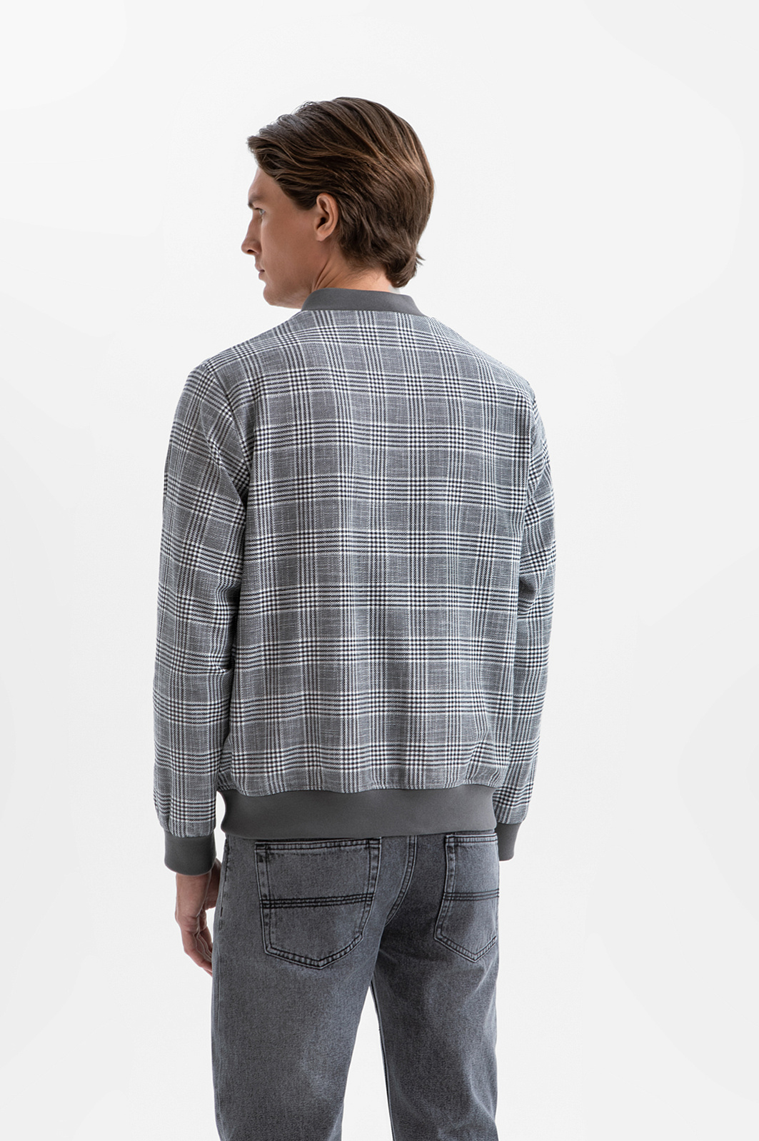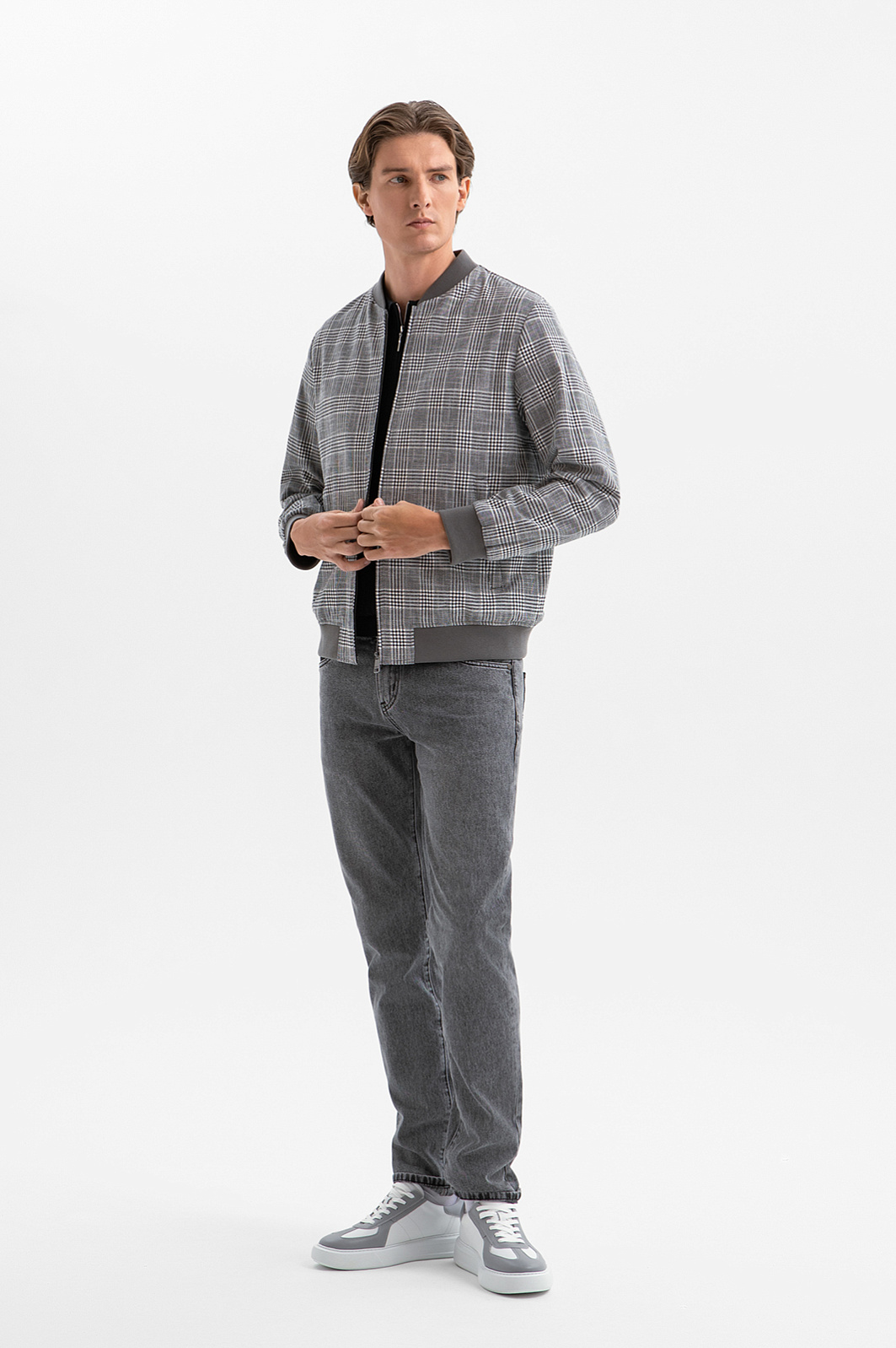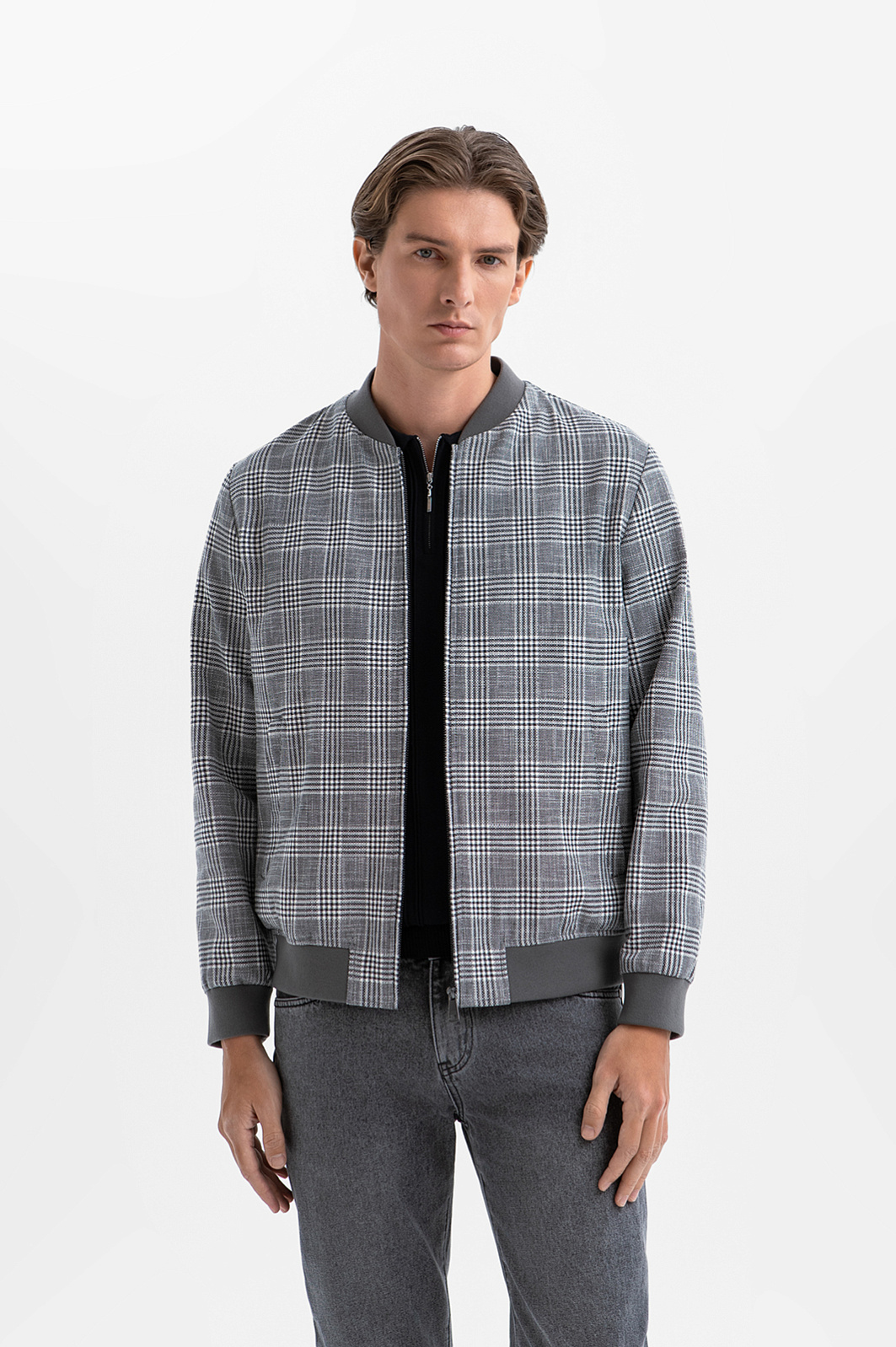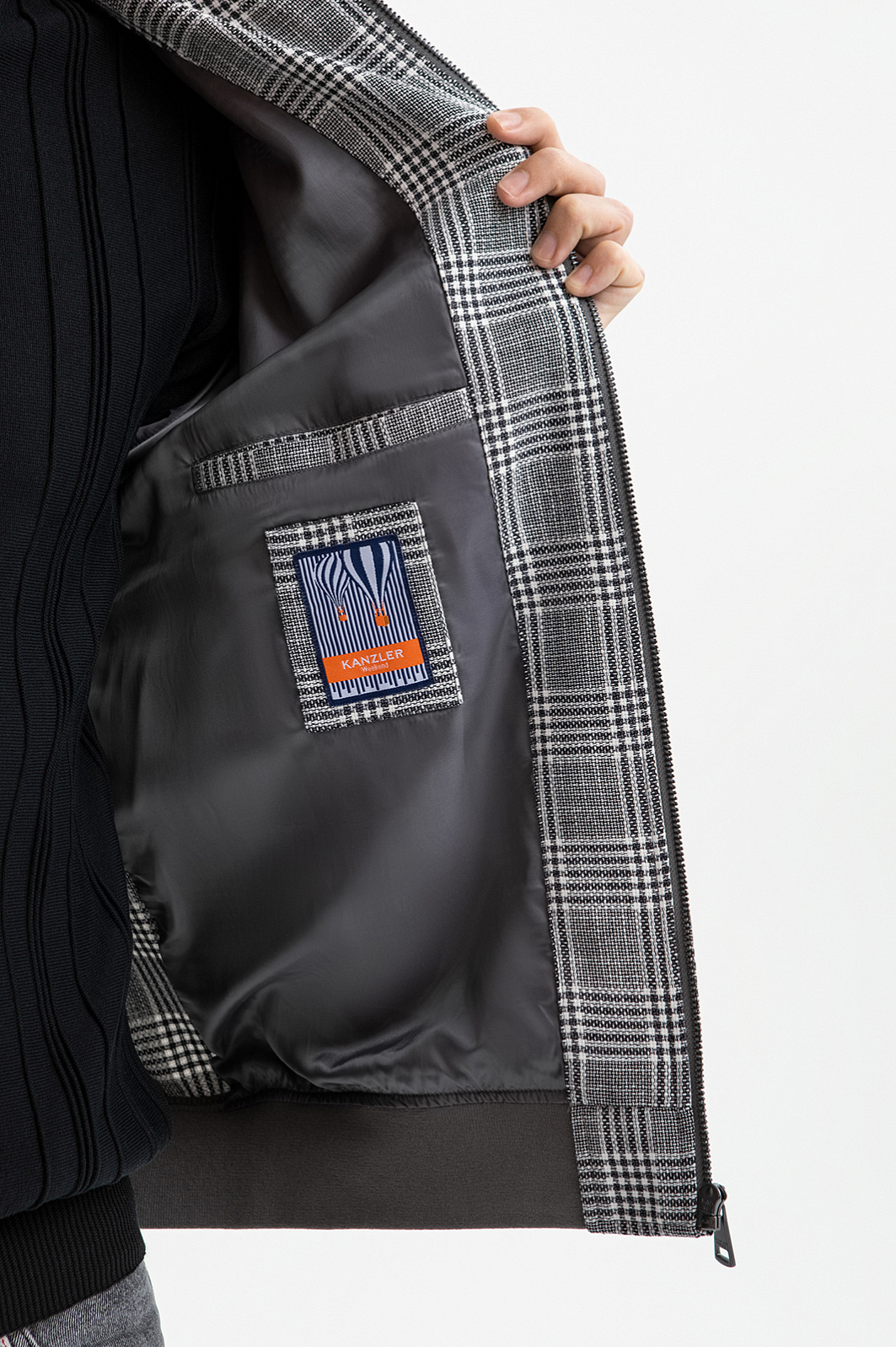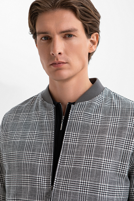Бомбер в клетку из хлопка и льна, цвет серый, цена 19 990 руб., код 271044 - купить в Ростове-на-Дону в интернет-магазине KANZLER