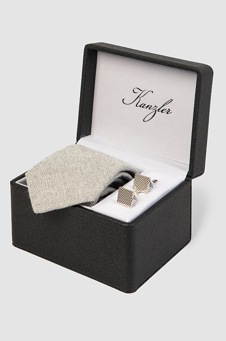 Подарочный набор (галстук + запонки), цвет серый, цена 4 990 руб., код 268130 - купить в Ростове-на-Дону в интернет-магазине KANZLER