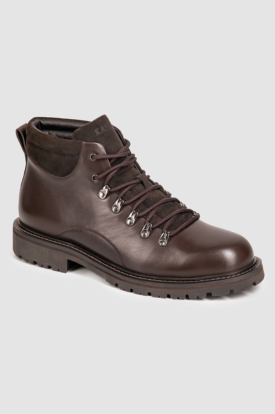 Ботинки из натуральной кожи и замши, цвет коричневый, цена 12 990 руб., код 270102 - купить в Ростове-на-Дону в интернет-магазине KANZLER