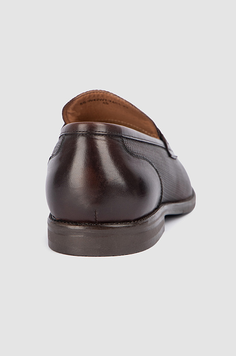 Элегантные темно-коричневые лоферы KANZLER — удобная универсальная обувь, которую можно носить с классическими костюмами и повседневной городской одеждой — джинсами, бомбером, поло или футболкой. Кожаный верх мягко облегает ногу. Матовая фактурная основа сочетается с гладкой кожей, из которой сделаны задник и канонический язычок с прорезью. Внутренняя часть со стелькой тоже сделаны из натуральной кожи. Устойчивая подошва — из резины.
