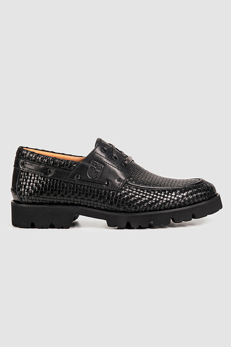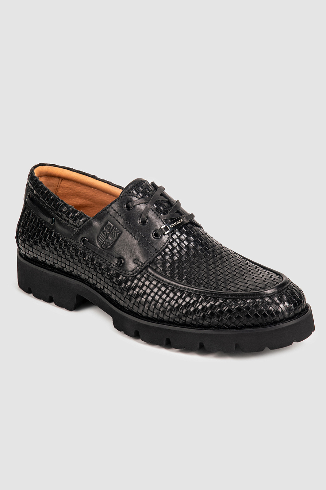 Черные топсайдеры KANZLER из натуральной кожи — роскошная версия классической яхтенной обуви, которая уже перестала быть привилегией яхтсменов и предназначена для расслабленных уикендов и неформальных выходов в бар, кафе, клуб, кинотеатр, на экскурсию или просто прогулку. Модель сохраняет основные традиционные детали — шов на мыске, кожаный шнурок, протянутый вокруг задника и устойчивую нескользящую рифленую подошву. Кожаный верх придаёт топсайдерам выразительность и шик. Чёрный цвет делает обувь универсальной и подходящей практически к любой одежде в стиле кежуал и умный кежуал.