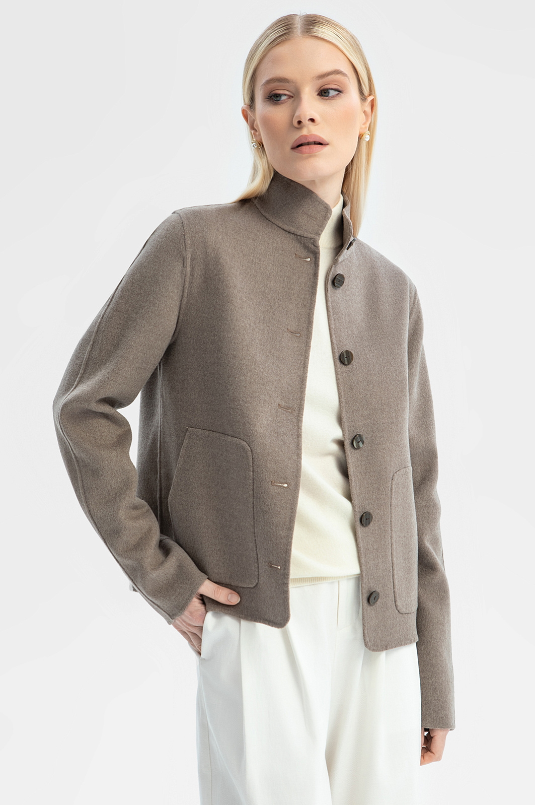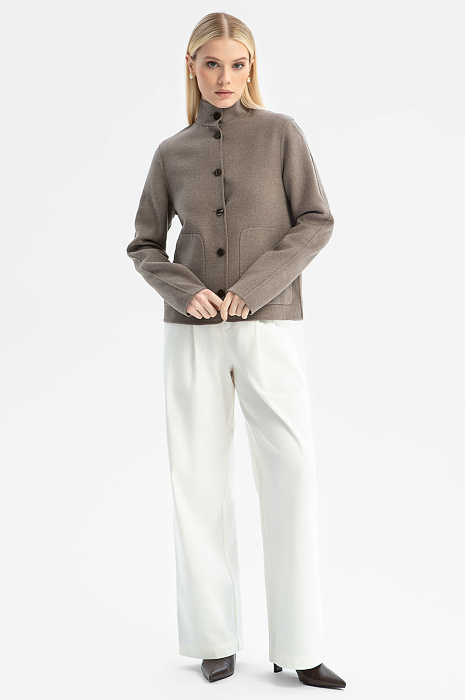 Короткое пальто KANZLER нейтрального серо-бежевого оттенка без подкладки — самодостаточная минималистичная модель, которая создана, чтобы в прохладные дни и межсезонье добраться из пункта А в пункт Б с шиком и комфортом. В соответствии с принципом «меньше — значит больше» она привлекает к себе много внимания. Лаконичные детали — воротник-стойка, крупные пуговицы и накладные карманы — гармонично сочетаются со строгим силуэтом и изящным кроем. Качественная ткань из смесовой шерсти прекрасно держит форму. Натуральные волокна шерсти сохраняют естественное тепло тела. Прочность и износоустойчивость материалу придают нейлон и вискоза. Параметры модели: рост 175, 88-65-92 Размер на модели: S