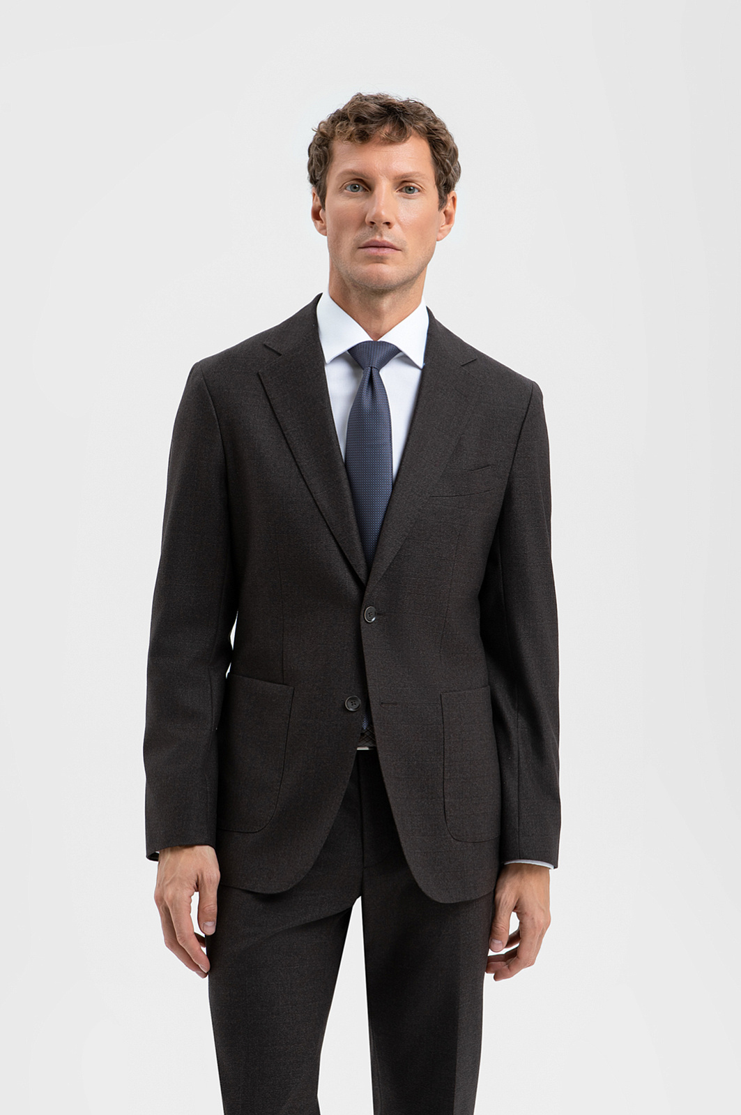 Однобортный пиджак KANZLER оттенка горького шоколада из дорогой костюмной шерсти Супер 100S — воплощение продуманного стиля, в котором объединились премиальное качество, современная элегантность, практичность и внимание к каждой детали. Изящный крой подчёркивает линии тела и придаёт образу лаконичность без излишней строгости. Аккуратные накладные карманы не утяжеляют силуэт и придают современное звучание. Устойчивая к сминанию ткань из тонкой дорогой шерсти (100%) сохраняет безупречный вид в течение всего дня, что делает пиджак идеальным вариантом для насыщенных дней, деловых поездок и встреч. Параметры модели: рост 188, 97-82-92 Размер на модели: 50