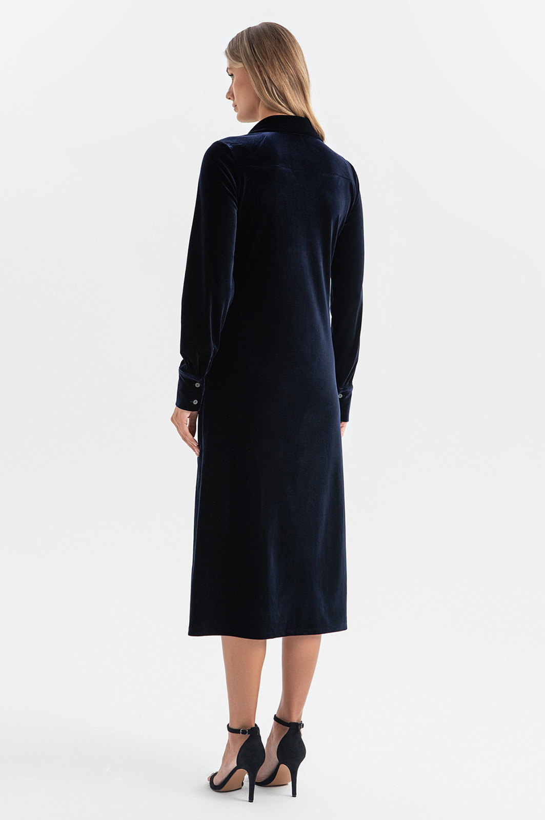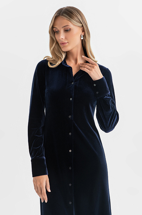Платье-рубашка из бархата, цвет синий темный, цена 5 990 руб. - купить в интернет-магазине KANZLER