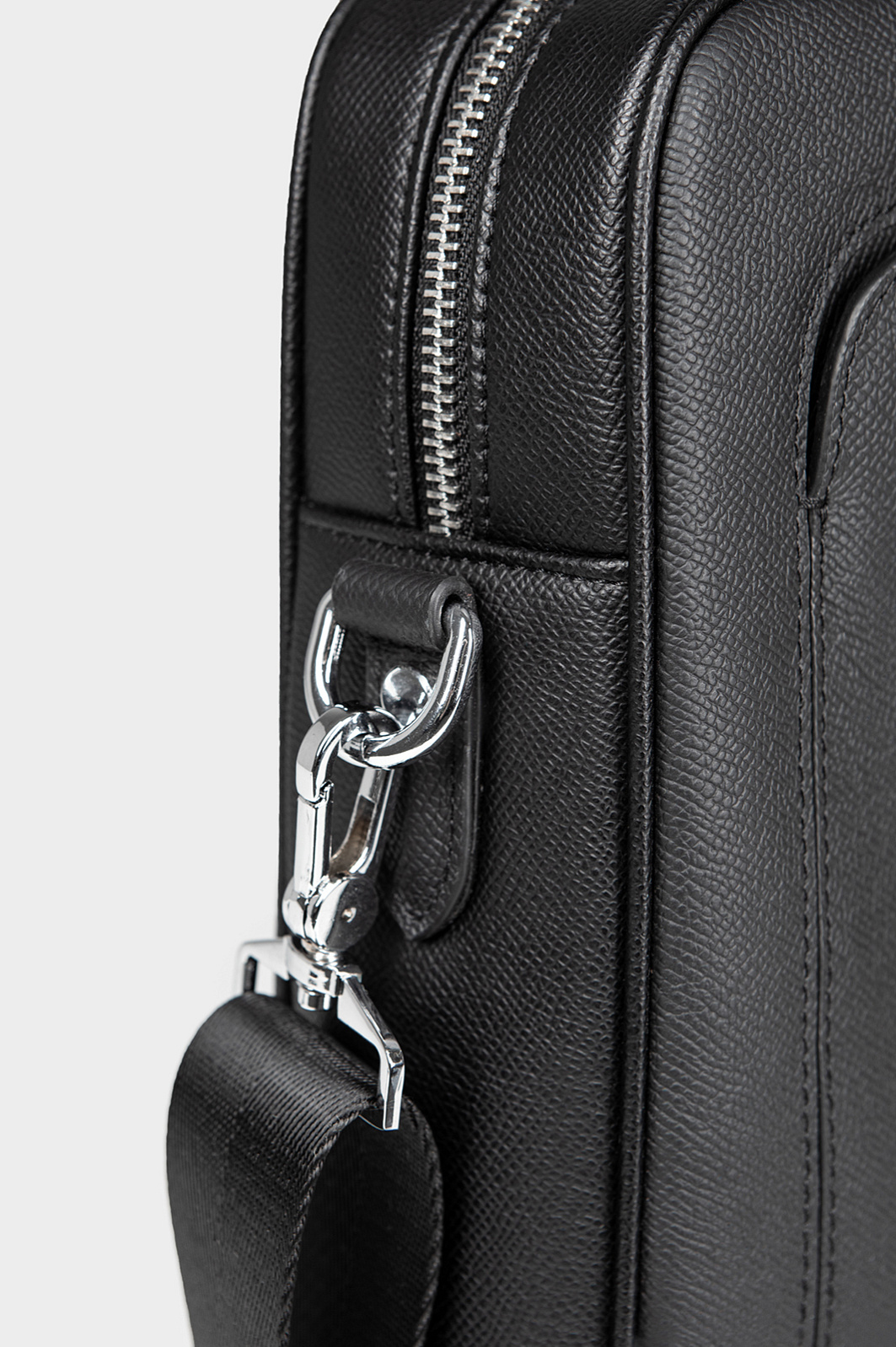 Чёрный портфель KANZLER из натуральной кожи — элегантный и функциональный аксессуар делового человека. Элегантная модель легко вмещает ноутбук, документы формата A4 и необходимые мелочи. Компактный размер делает портфель необременительным аксессуаром, который можно носить в офис ежедневно. Фактурная кожа придаёт модели выразительность и сдержанный шик, а ручки и ремешки из гладкой кожи — уникальность. Двухзамковая молния позволяет быстро достать или убрать вещи, сохранив аккуратную форму портфеля.