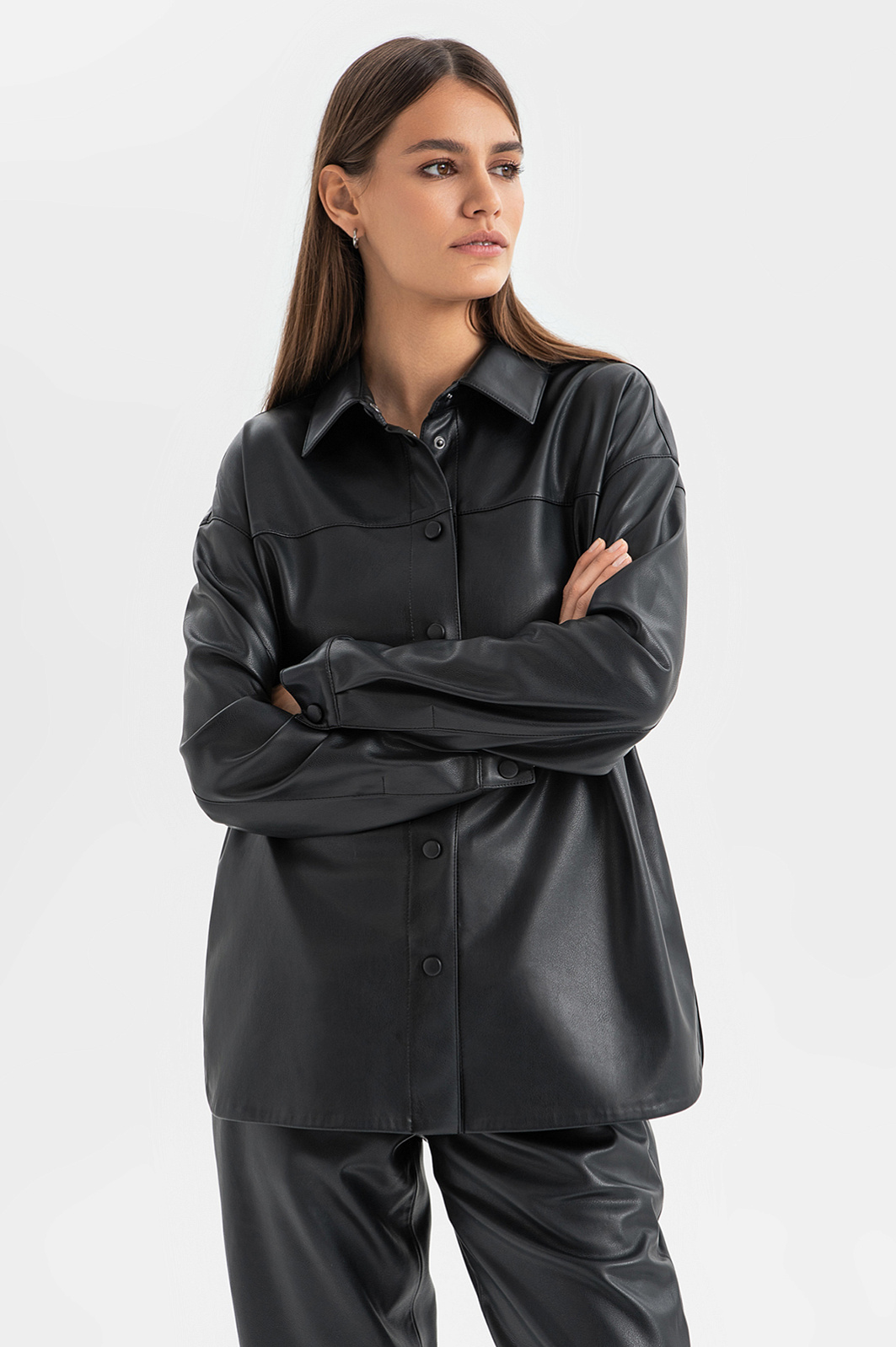 Рубашка из экокожи, цвет черный, цена 6 990 руб. - купить в интернет-магазине KANZLER