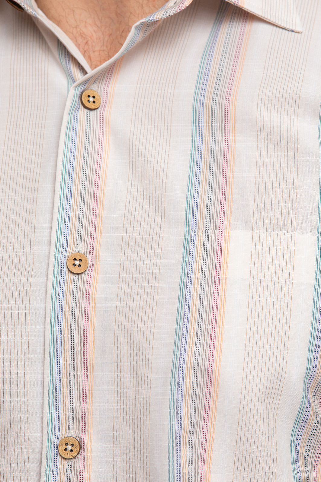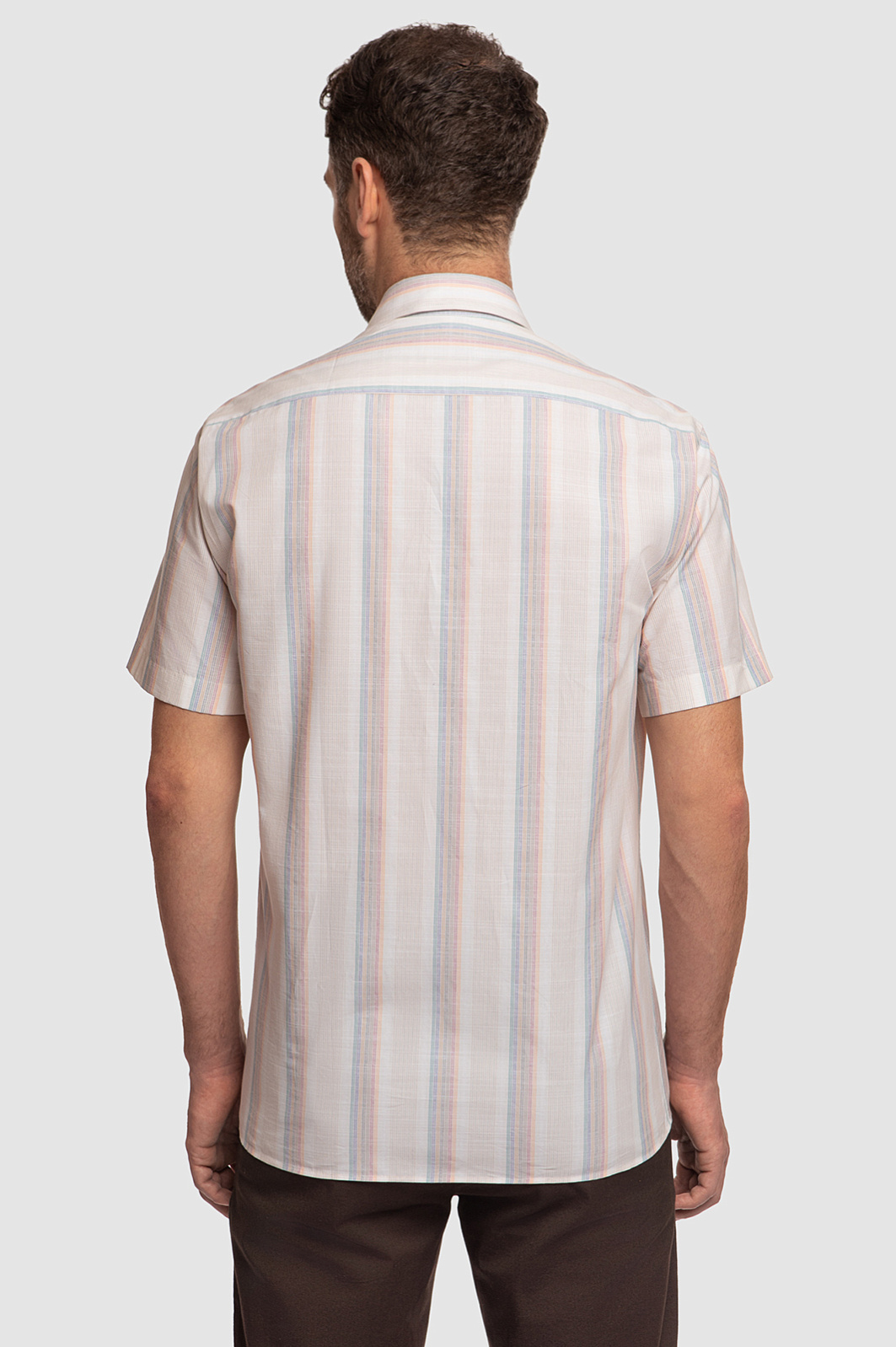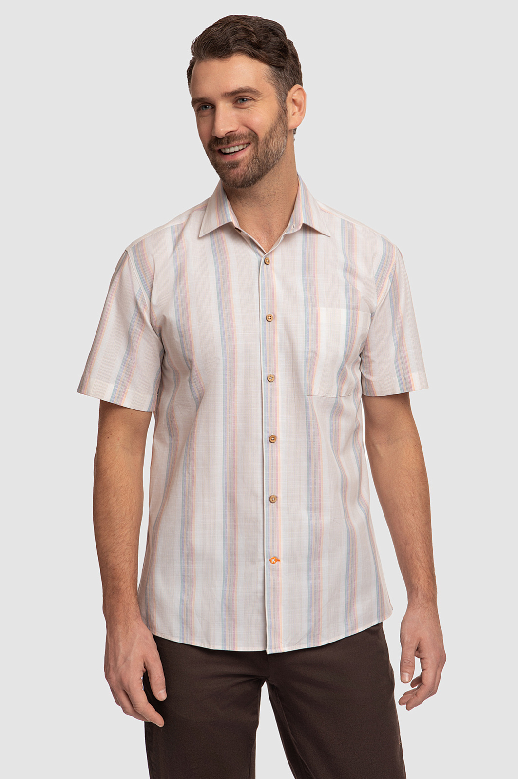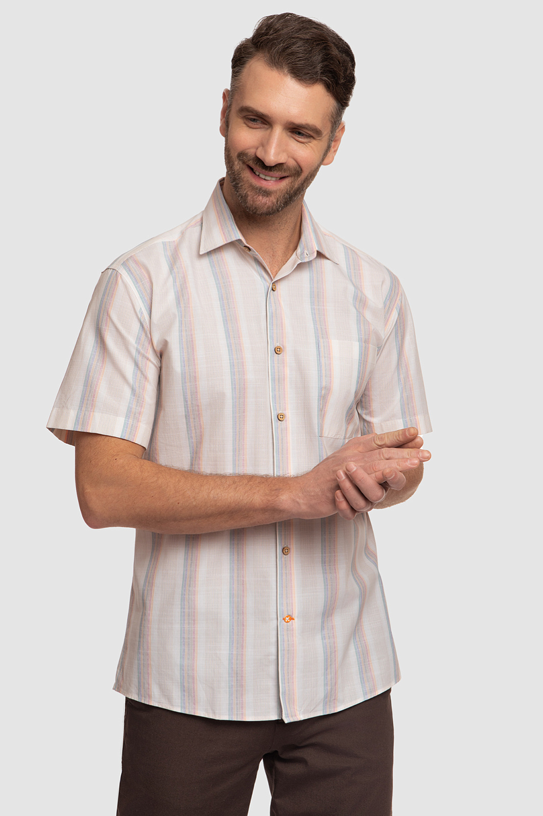 Универсальная сорочка KANZLER с коротким рукавом из хлопка в приятной пастельной гамме подружится с одеждой в естественных оттенках — неформальными брюками, шортами и джинсами. Получится гармоничный союз в стиле кежуал для умиротворенного отдыха и прогулок. Оранжевая акцентная пуговица с фирменной буквицей на планке придает сорочке немного легкого игривого настроения. Свободный крой не сковывает движений. Натуральная ткань в вертикальную полоску мягко облегает тело. Гипоаллергенные волокна хлопка не раздражают кожу даже в жаркий день, создавая воздушную прослойку и поддерживая приятную температуру. Параметры модели: рост 189, 102-80-99 Размер на модели: 40