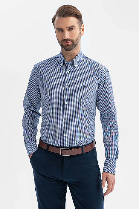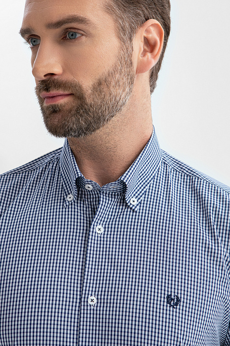 Сорочка из хлопка в клетку, синий цвет, цвет синий, цена 5 990 руб., код 269323 - купить в Ростове-на-Дону в интернет-магазине KANZLER
