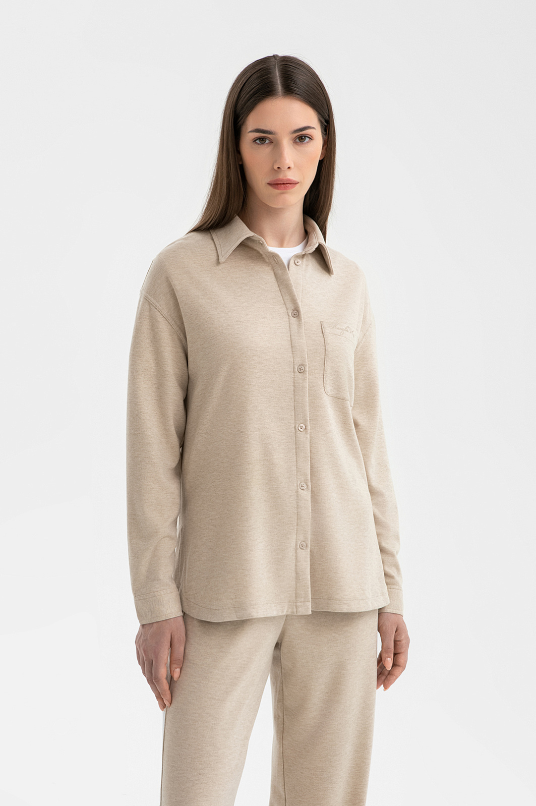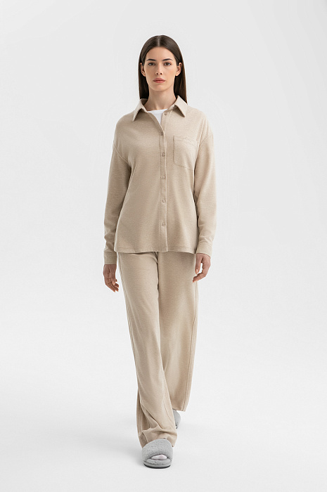 Сорочка KANZLER, воплощение философии неспешной жизни, превращает каждый момент в ритуал наслаждения. Песочный оттенок создает ауру спокойствия и безмятежности. Свободный силуэт не стесняет движений и мягко обволакивает тело, обеспечивая комфорт – во время утреннего кофе, прогулки, медитации или сна. Состав – идеально выверенный микс волокон: полиэстер обеспечивает прочность и устойчивость к деформации, вискоза дарит шелковистую гладкость и терморегуляцию, полиамид добавляет эластичности, акрил фиксирует форму, предотвращая усадку, а шерсть служит добавкой для сохранения тепла, не перегревая тело. Для создания цельного образа рекомендуем дополнить модель пижамными брюками из нашей коллекции.