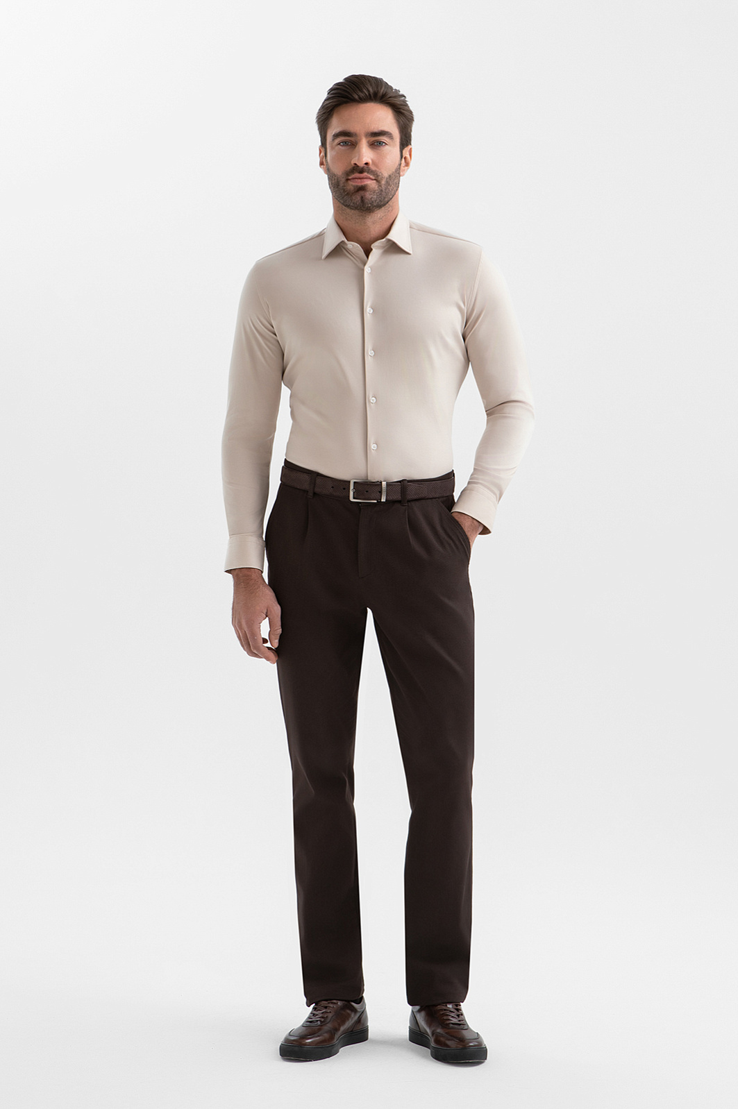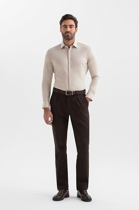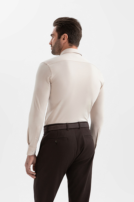 Сорочка KANZLER из чистого хлопка в нежно-бежевом оттенке — воплощение спокойной элегантности и безупречного вкуса. Она смотрится одинаково стильно в формальных и расслабленных образах. Деликатный оттенок подчёркивает благородство материала и придаёт образу утончённость. Аккуратный воротник, французская планка и пуговицы в тон делают модель лаконичной, цельной и современной. Прилегающий крой мягко очерчивает контуры тела, не ограничивая свободу движений. Трикотаж выполнен из гипоаллергенного хлопка (100%) — лёгкий, дышащий, эластичный. Ткань хорошо адаптируется к индивидуальным особенностям фигуры и поддерживает свежесть тела.