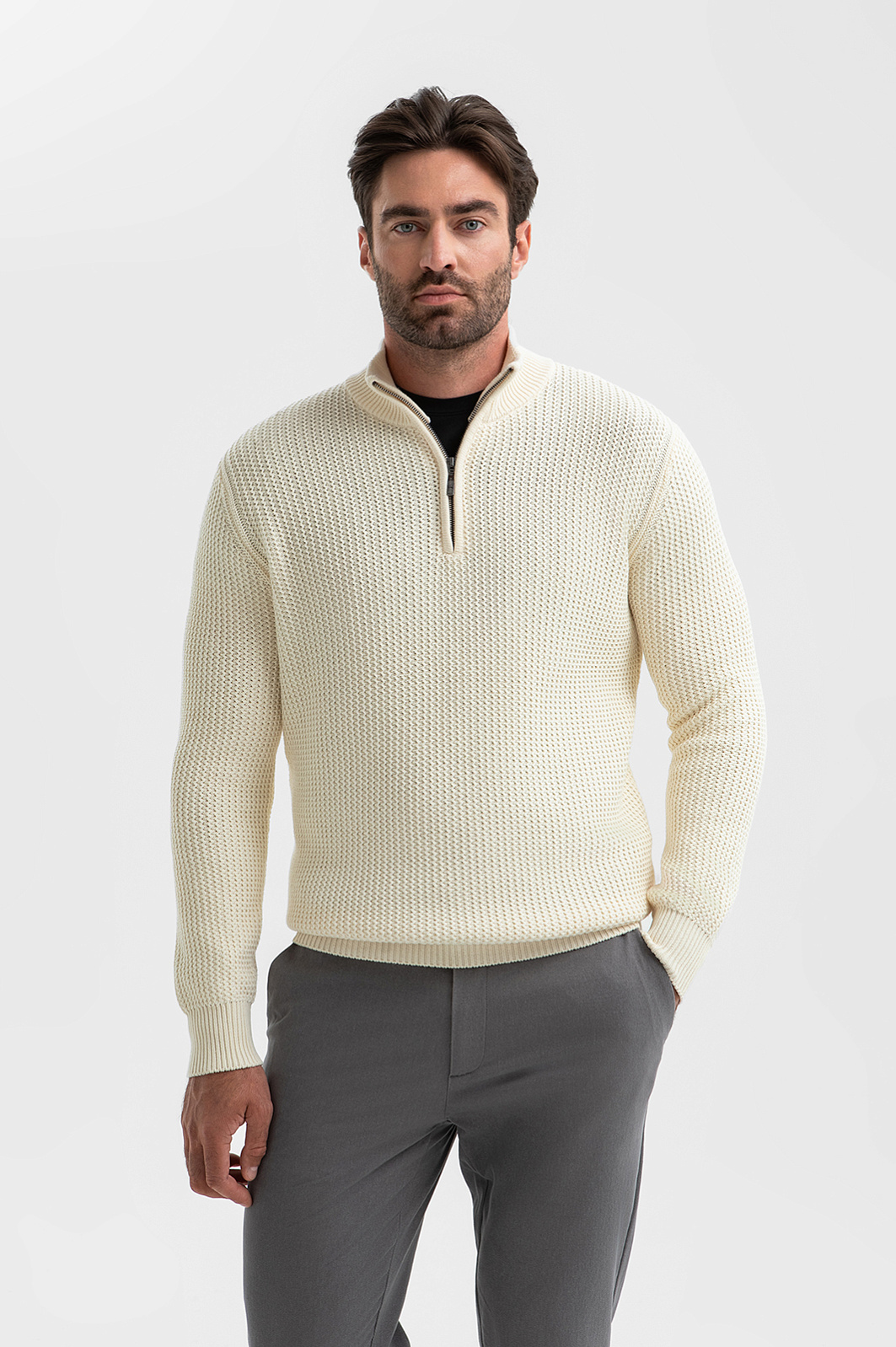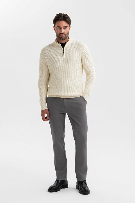 Свитер KANZLER – воплощение философии минимализма, где каждая деталь доведена до совершенства. Молочный цвет не просто универсален – он создает ауру благородной чистоты, освежая образ и сочетаясь с одеждой любых оттенков. Молния на воротнике позволяет одним движением трансформировать образ и регулировать комфортную температуру в переменчивую погоду межсезонья. Мягкий 100-процентный хлопок премиального качества бережен даже к чувствительной коже и сохраняет форму после многократных стирок. Стилисты рекомендуют дополнить образ серыми брюками и черной футболкой. Параметры модели: рост 192, 108-83-102 Размер на модели: M