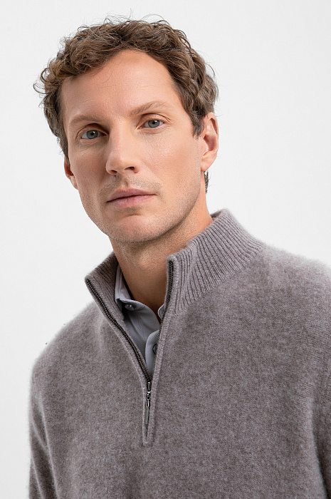 Стильный свитер KANZLER с высоким горлом на молнии из чистого кашемира в тёплом серо-коричневом оттенке — не просто одежда. Это роскошная вещь из лимитированной коллекции, которая придаёт уверенности и помогает обрести дзен в ежедневной рутине. Высокий воротник на молнии создаёт строгий лаконичный силуэт, а в расстёгнутом виде придаёт расслабленной небрежности. Трикотажные резинки мягко поддерживают края, обеспечивая аккуратную посадку. Гладкая вязка служит фоном, который раскрывает красоту и благородство дорогого натурального материала. Кашемир — секрет непревзойдённого комфорта, который хочется всегда носить при себе. Его невесомые волокна нежно обнимают тело, сохраняя естественное тепло. Параметры модели: рост 188, 97-82-92 Размер на модели: M