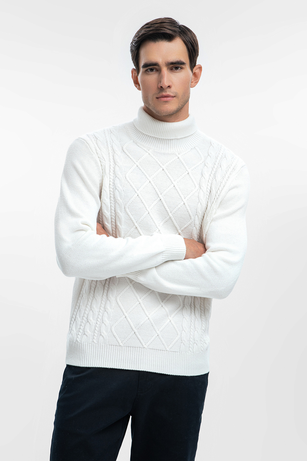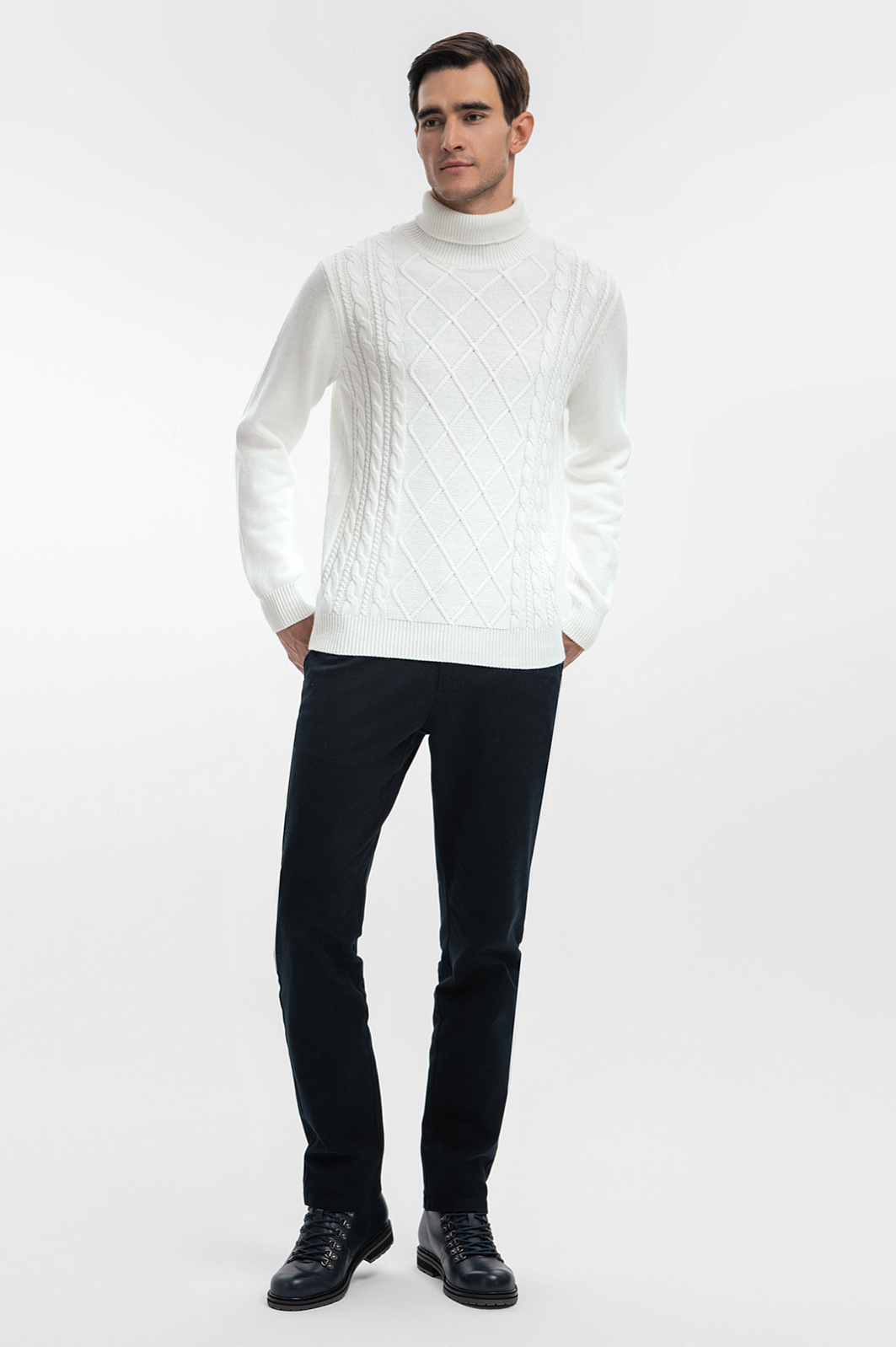 Нарядная водолазка KANZLER из хлопка и кашемира отличается изысканным стилем. Благородная рафинированная модель воплощена в белом цвете и мягких очертаниях вязаного фактурного трикотажа, который объединяет достоинства хлопка и кашемира. Натуральный воздухопроницаемый хлопок поддерживает ощущение свежести. Дорогой кашемир придает ткани нежность, гарантируя непревзойденный комфорт в течение дня. Параметры модели: рост 192, 101-76-97 Размер на модели: M