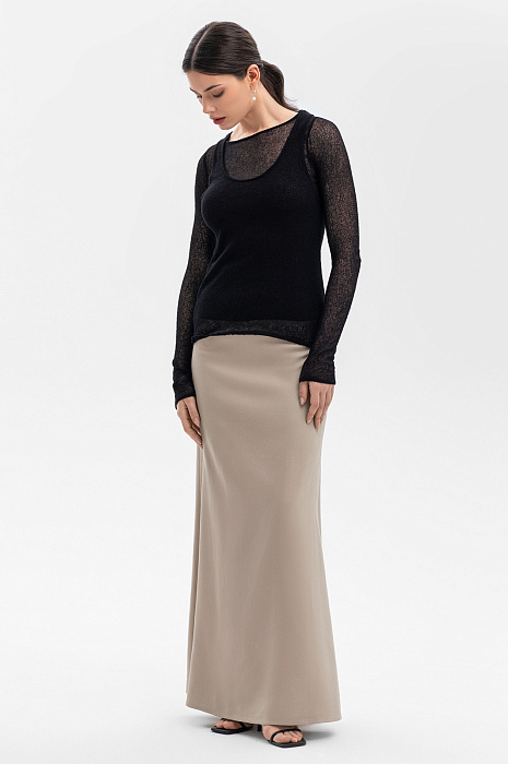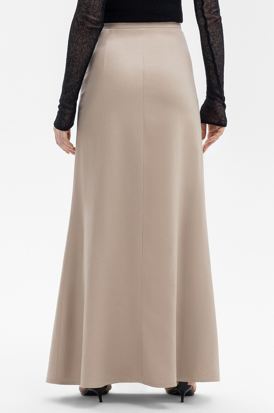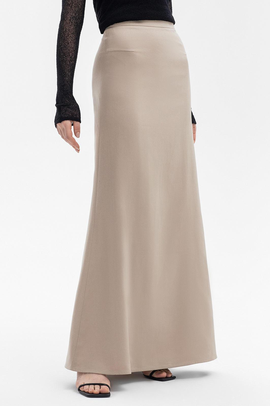 Изысканная длинная бежевая юбка KANZLER подчеркивает в образе изящество и женственность. Юбку-макси можно носить с джемперами или топами в сочетании с удлиненными свободными пиджаками. Вшитый пояс подчеркивает талию. Прилегающий крой и вытачки четко очерчивают линию бедер. От колена силуэт плавно расширяется. Гипоаллергенная смесовая ткань изо льна и тенсела приятна на ощупь. Натуральные волокна льна охлаждают тело в жаркие дни. Созданный из природного сырья тенсел делает материал более прочным и устойчивым к износу.