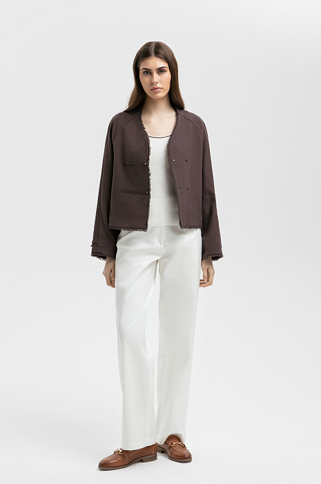 Жакет из хлопка и льна, цвет коричневый, цена 14 990 руб. - купить в интернет-магазине KANZLER